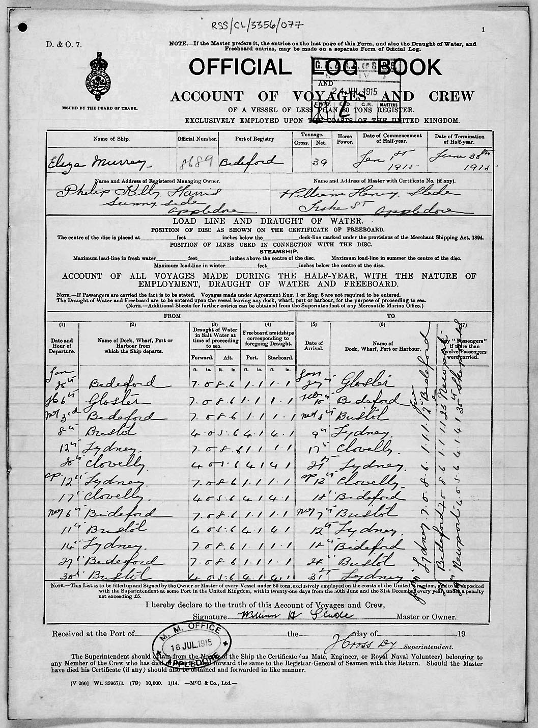 1915 crew list for the vessel 'ELIZA MURRAY'