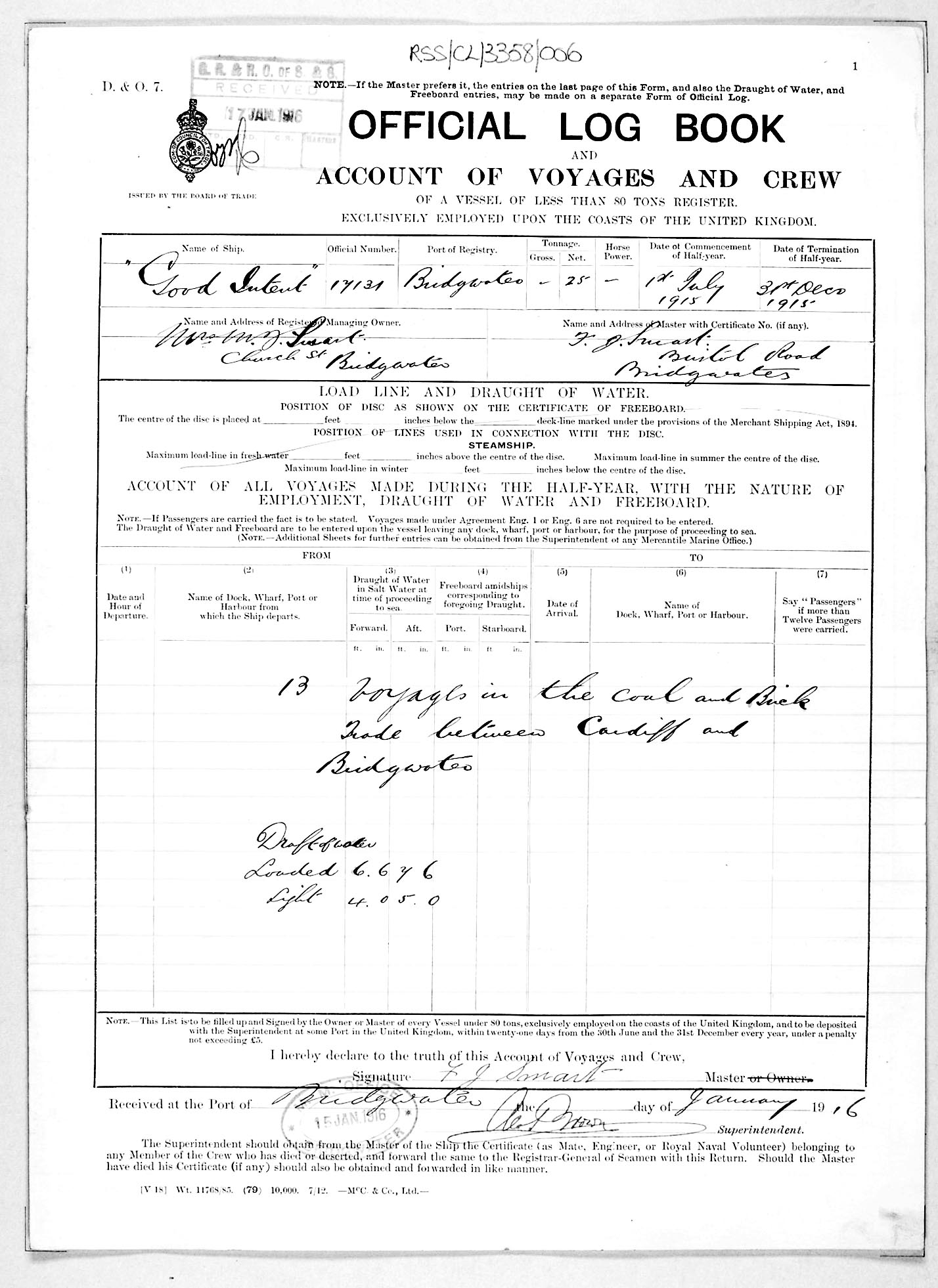 1915 crew list for the vessel 'GOOD INTENT'