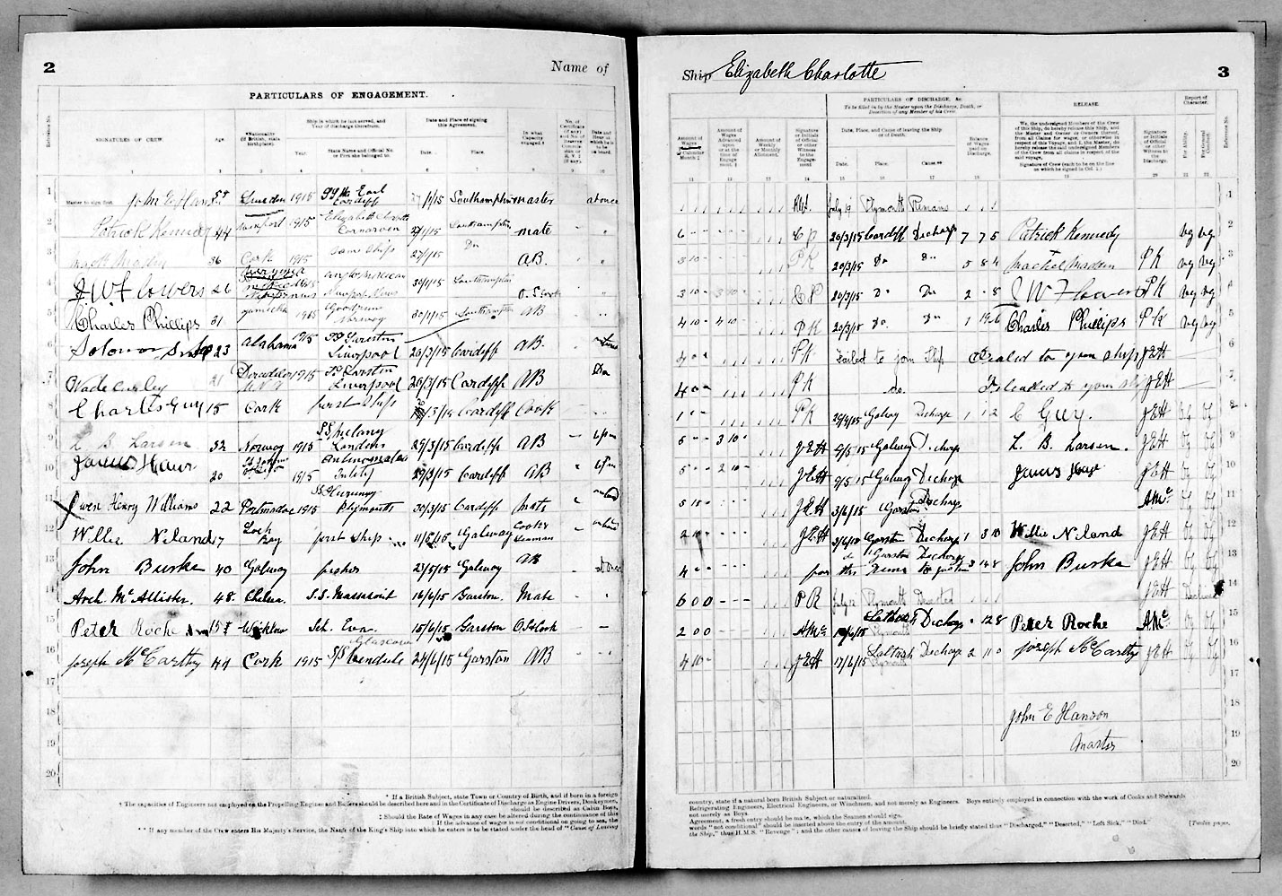 Crew list document for vessel 'ELIZABETH CHARLOTTE'