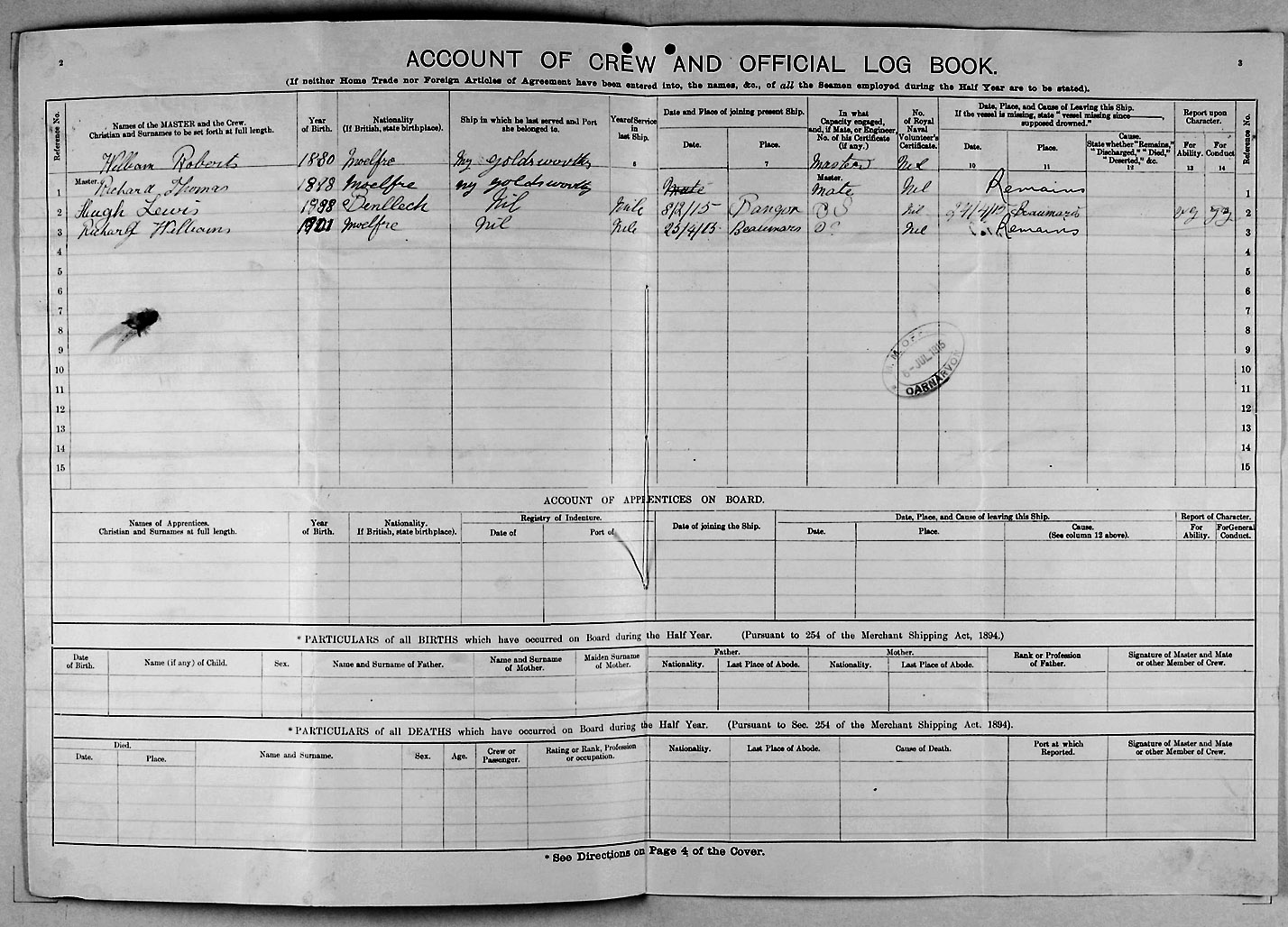 Crew list document for vessel 'MARY GOLDSWORTHY'