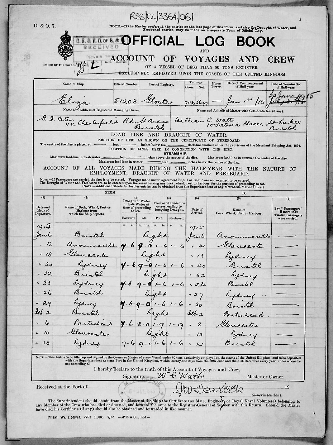 1915 crew list for the vessel 'ELIZA'