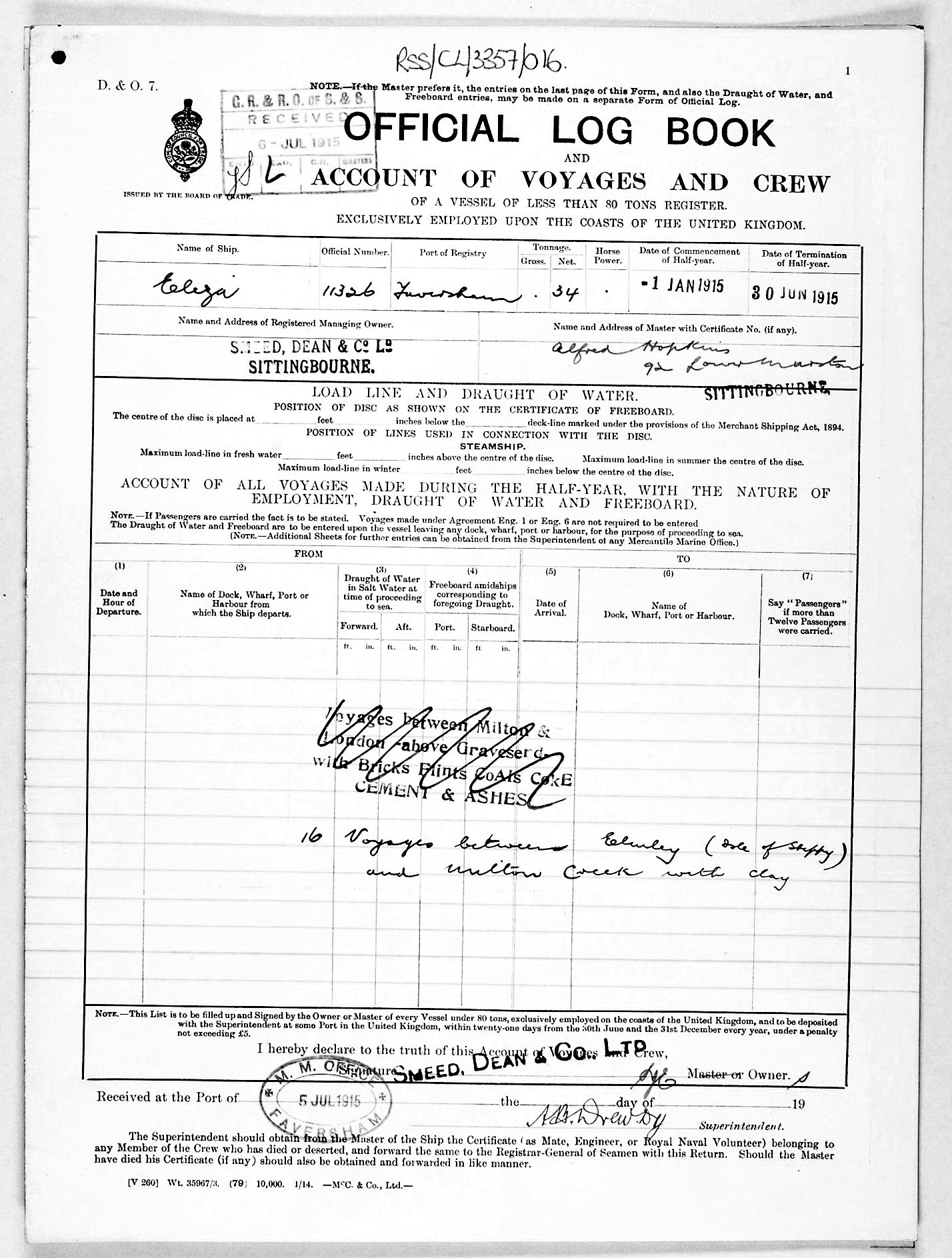 1915 crew list for the vessel 'ELIZA'