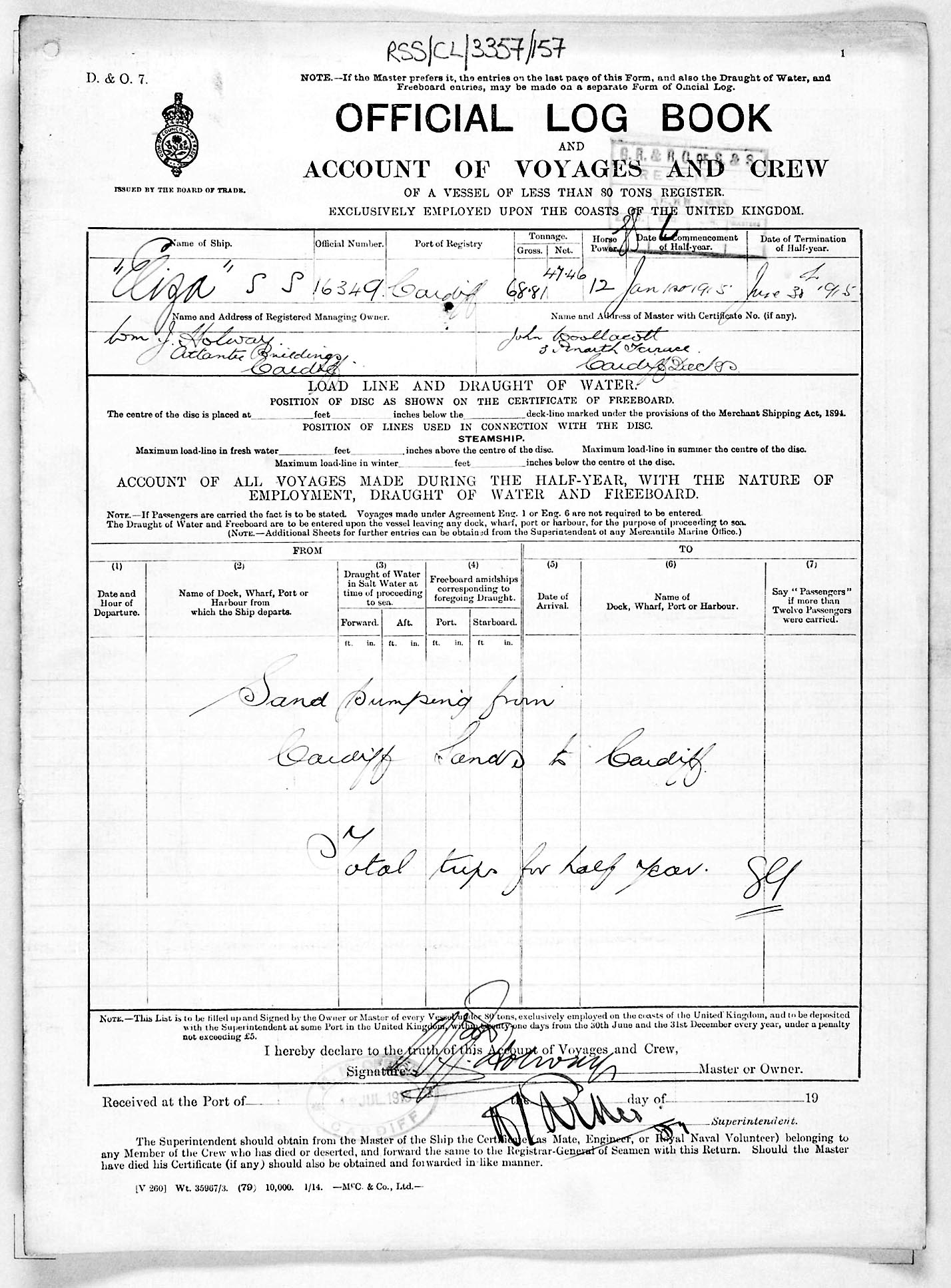 1915 crew list for the vessel 'ELIZA'
