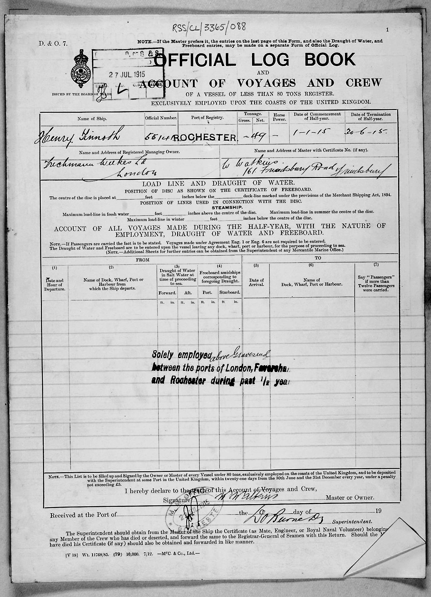 1915 crew list for the vessel 'HENRY TIMROTH'