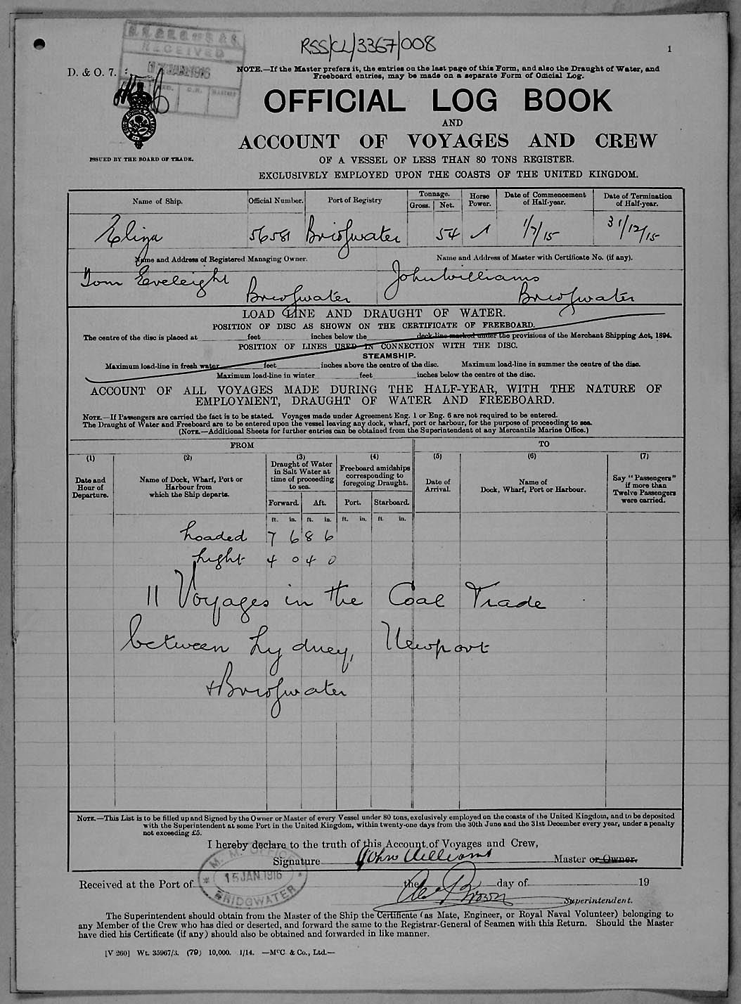 1915 crew list for the vessel 'ELIZA'