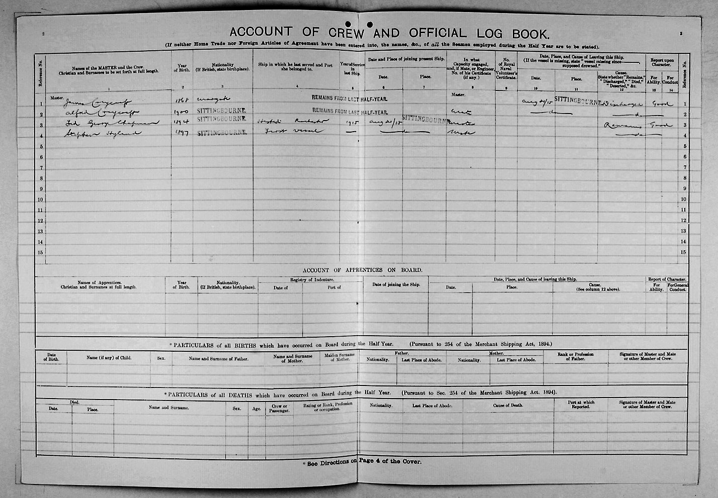 1915 crew list for the vessel 'ERNEST'