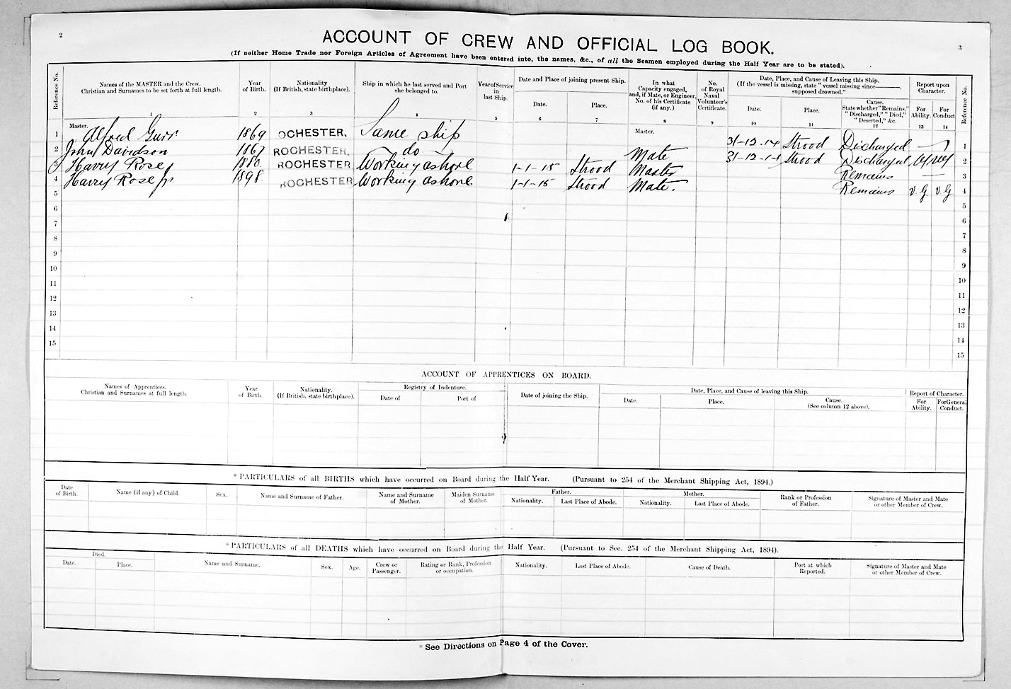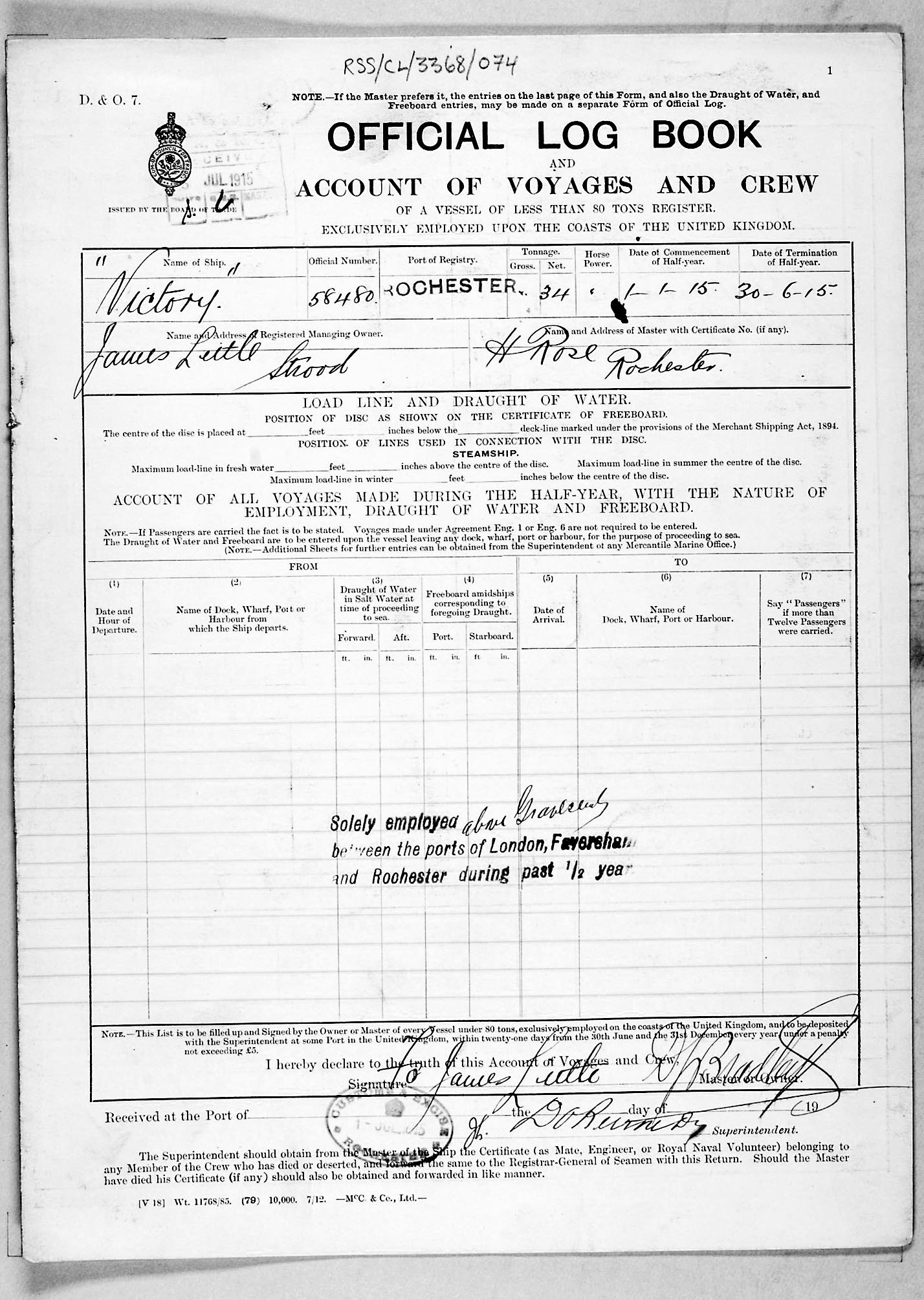 1915 crew list for the vessel 'VICTORY'