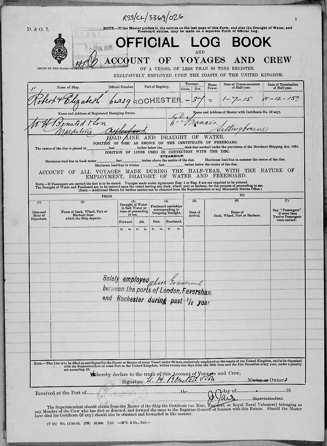 1915 crew list for the vessel 'ROBERT & ELIZABETH'