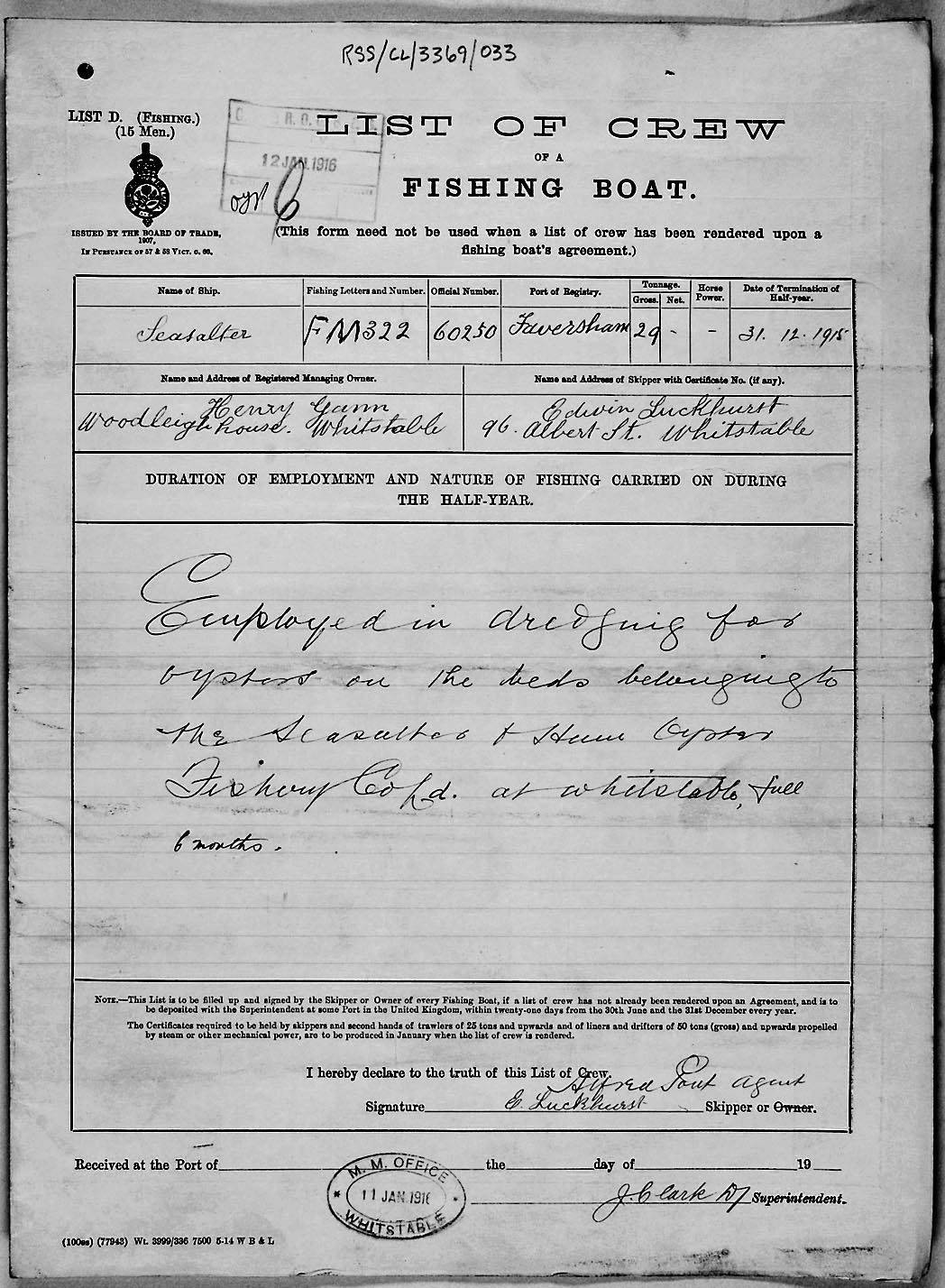 1915 crew list for the vessel 'SEASALTER'