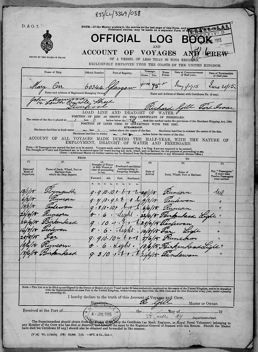 Crew list document for vessel 'MARY ORR'