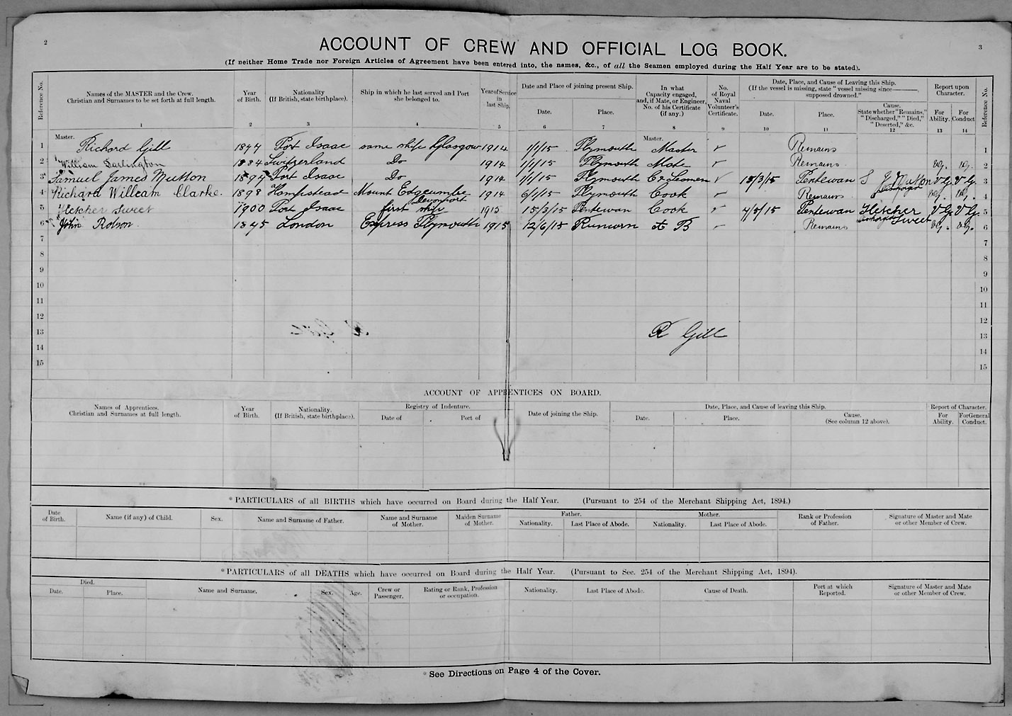 1915 crew list for the vessel 'MARY ORR'