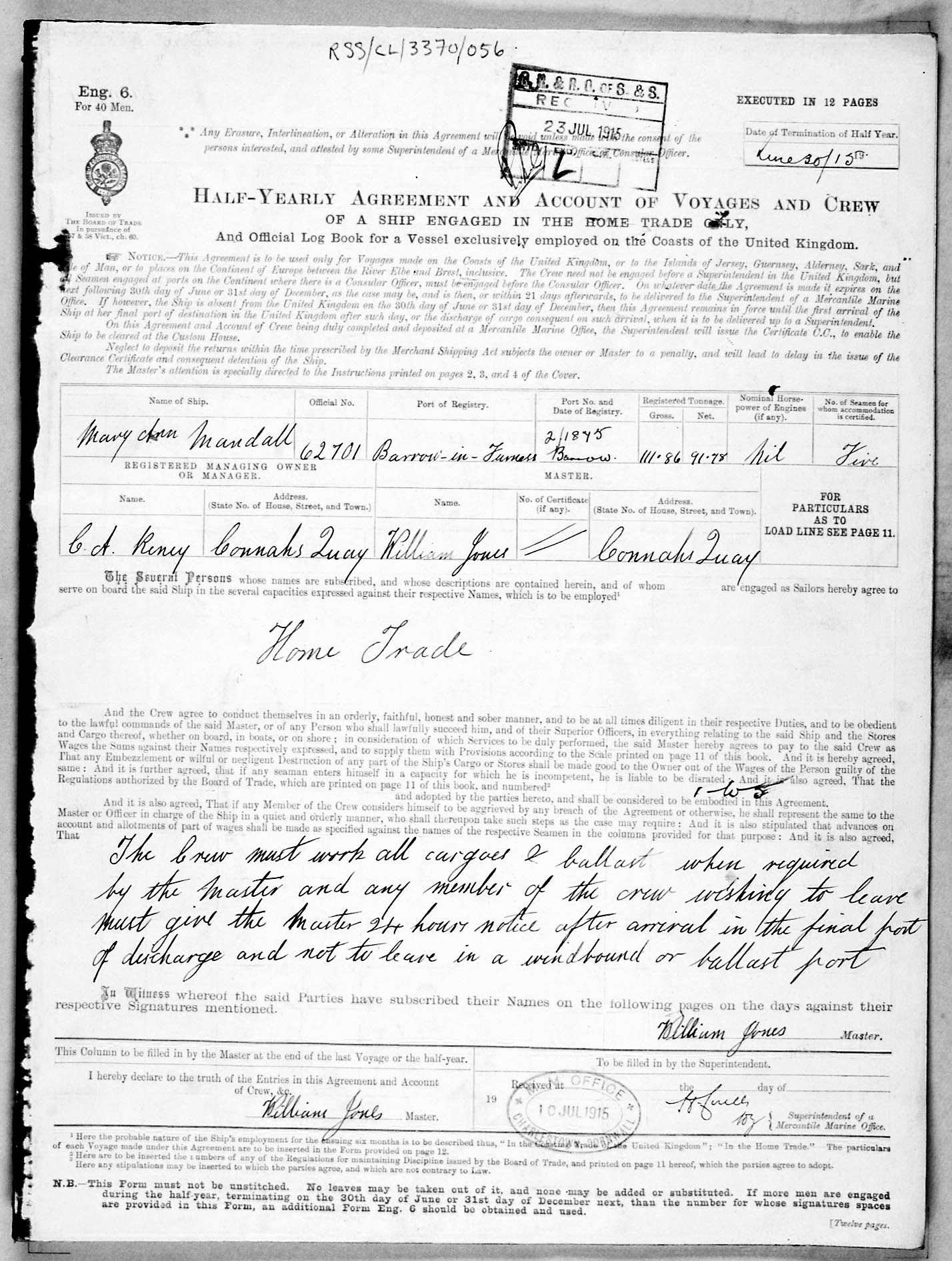 Crew list document for vessel 'MARY ANN MANDALL'
