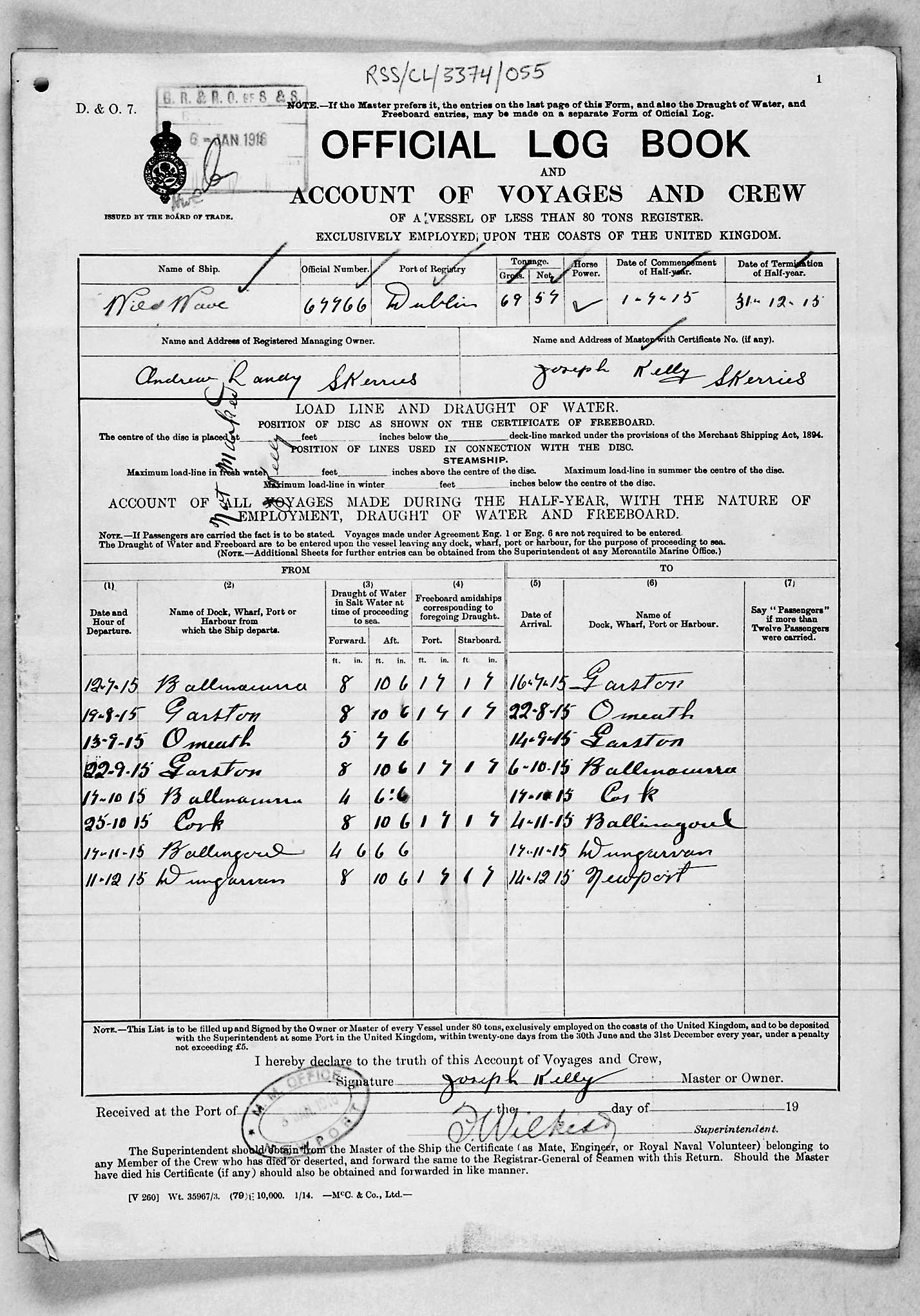1915 crew list for the vessel 'WILD WAVE'