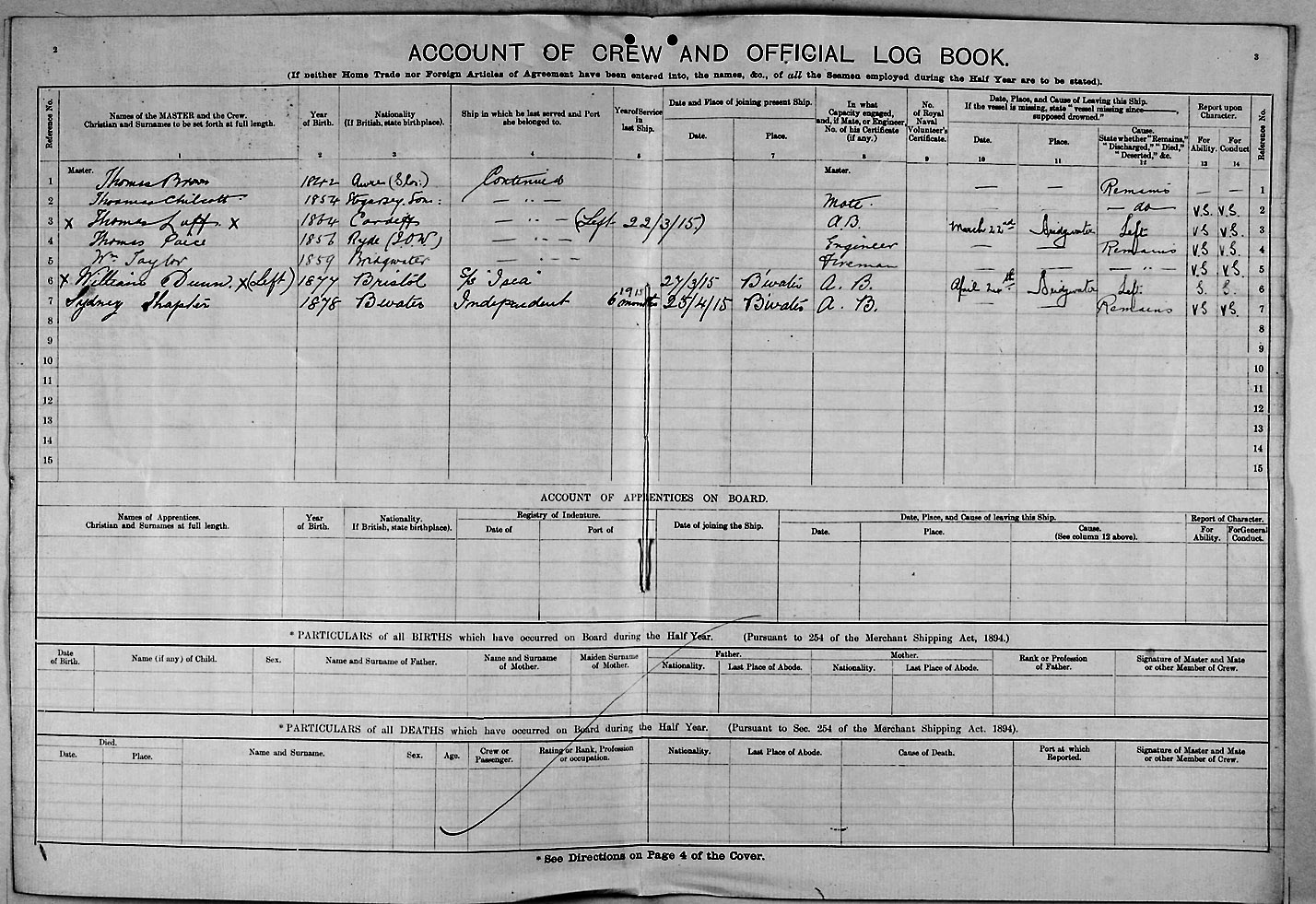 1915 crew list for the vessel 'DEVON'