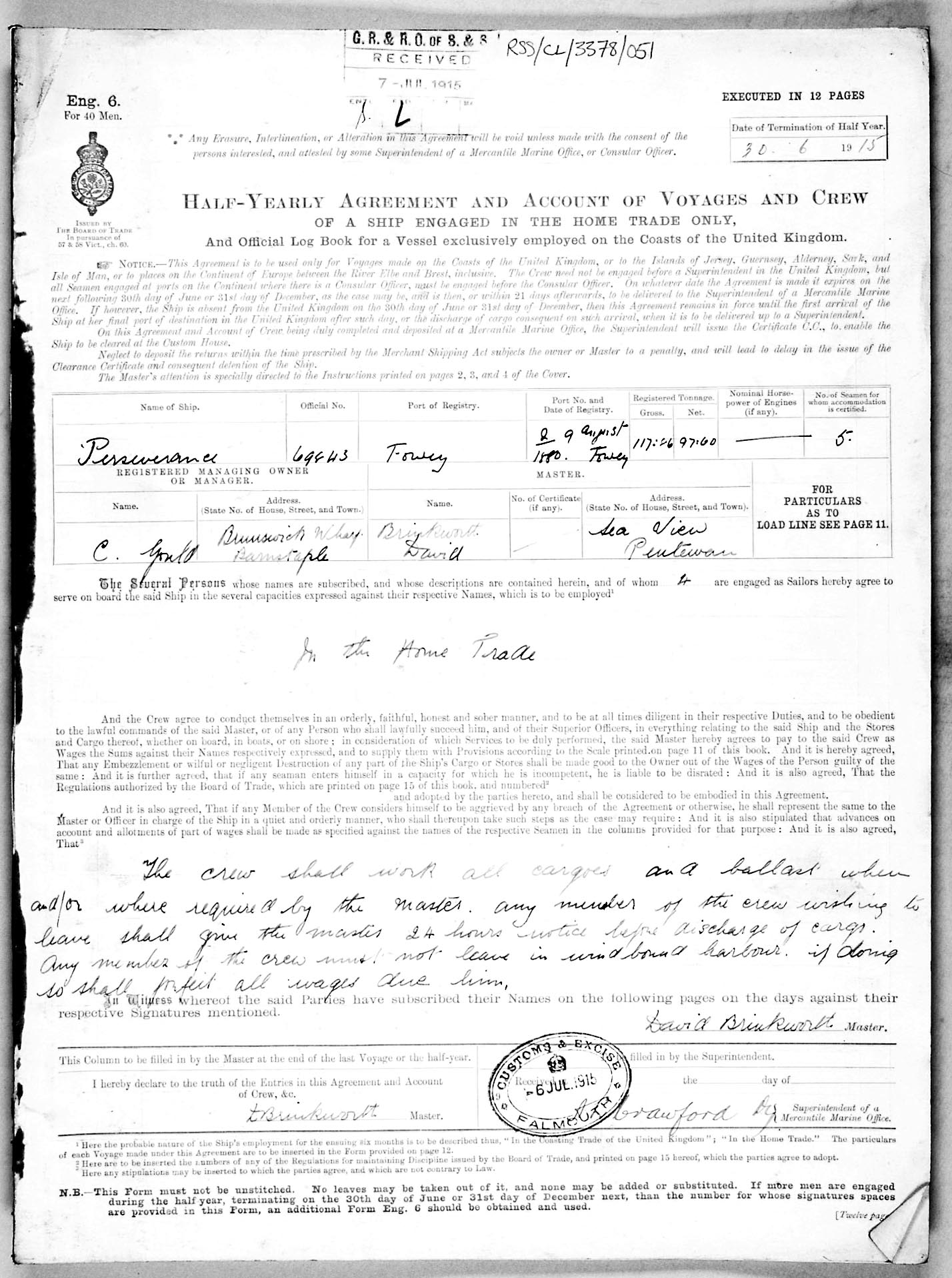 Already have a reader’s ticket for the Caird Library and Archive? Welcome back! You can view the catalogue record for this Crew List and click again to order it for viewing in the library.
