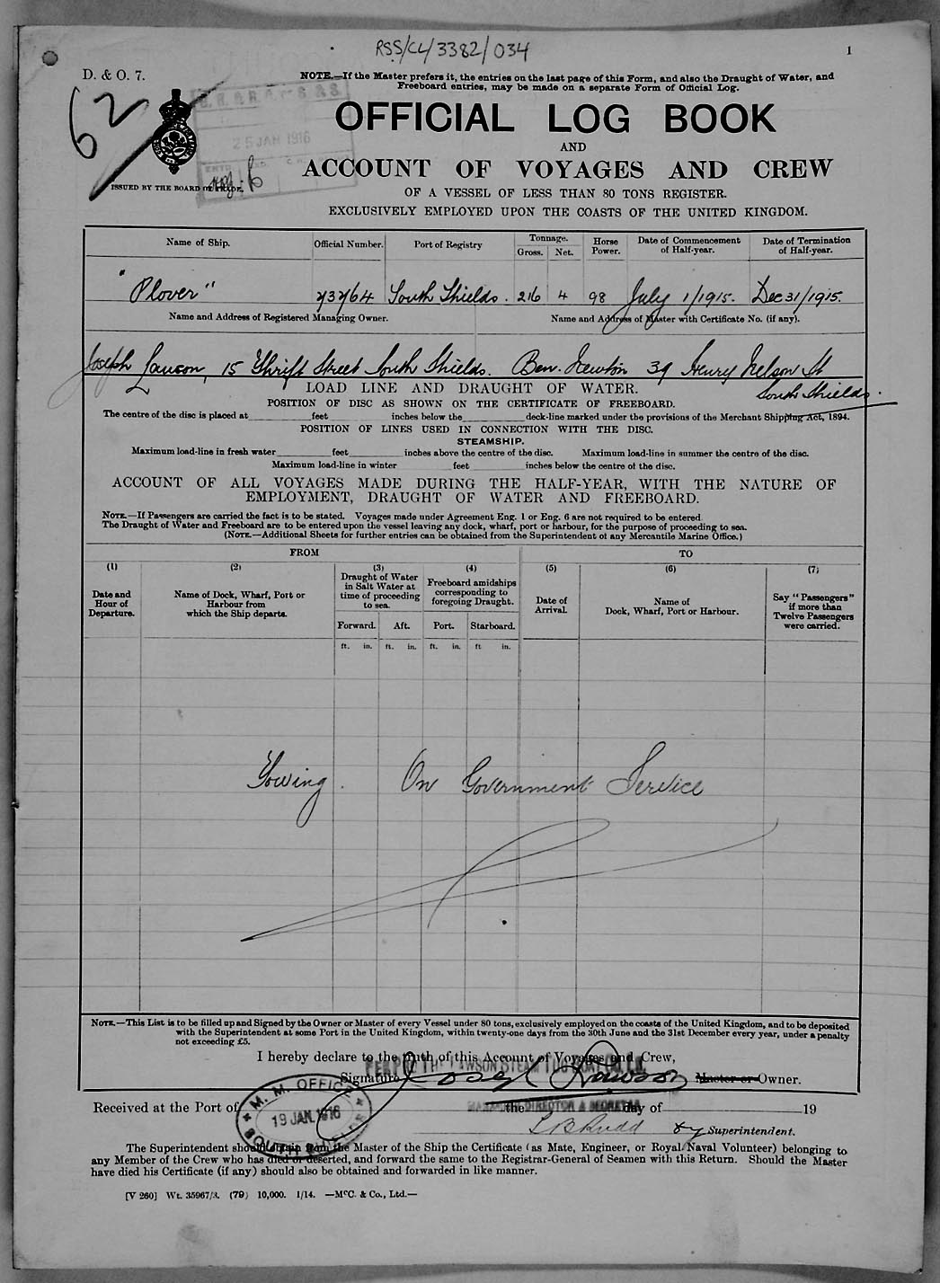 Crew list document for vessel 'PLOVER'