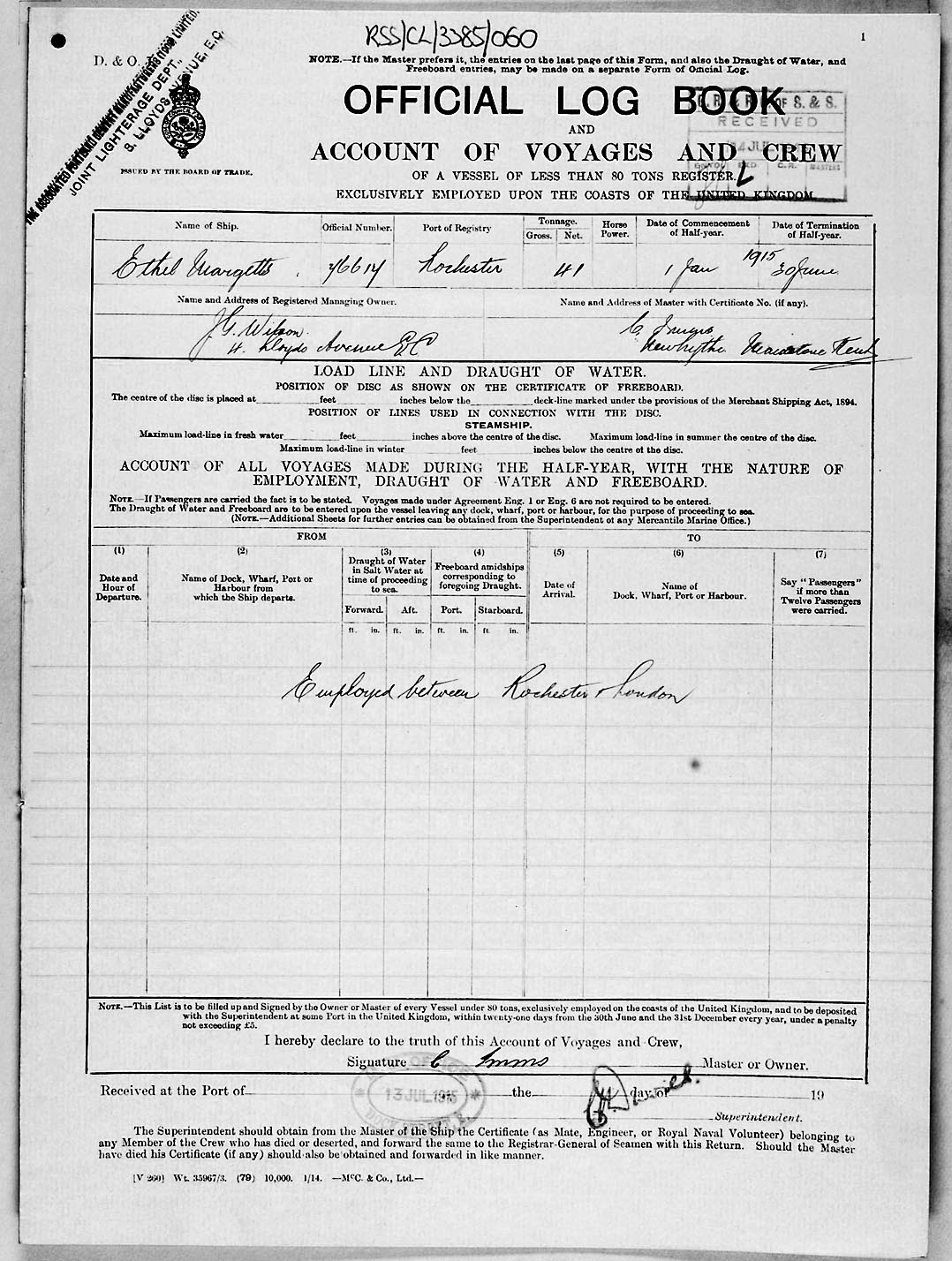 1915 crew list for the vessel 'ETHEL MARGETTS'