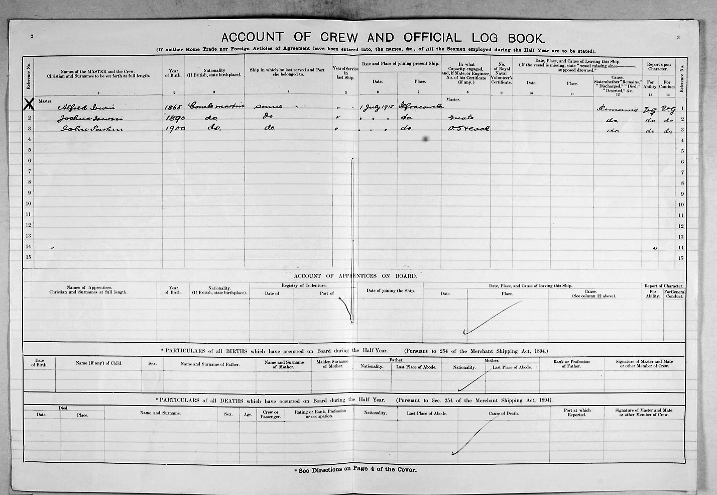 1915 crew list for the vessel 'SELINA MARY'