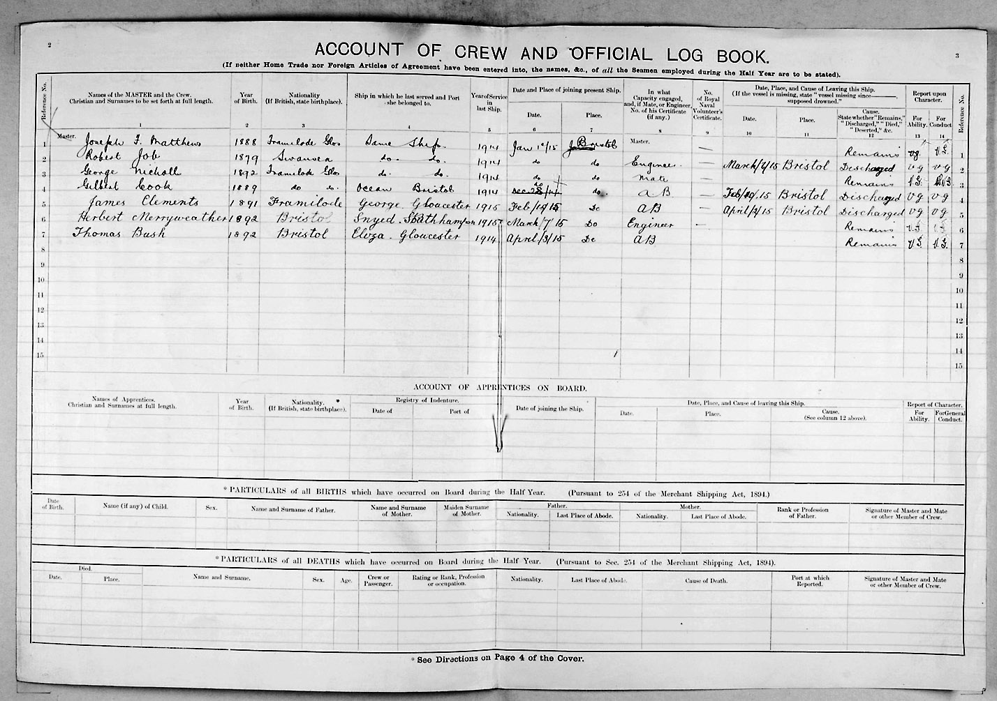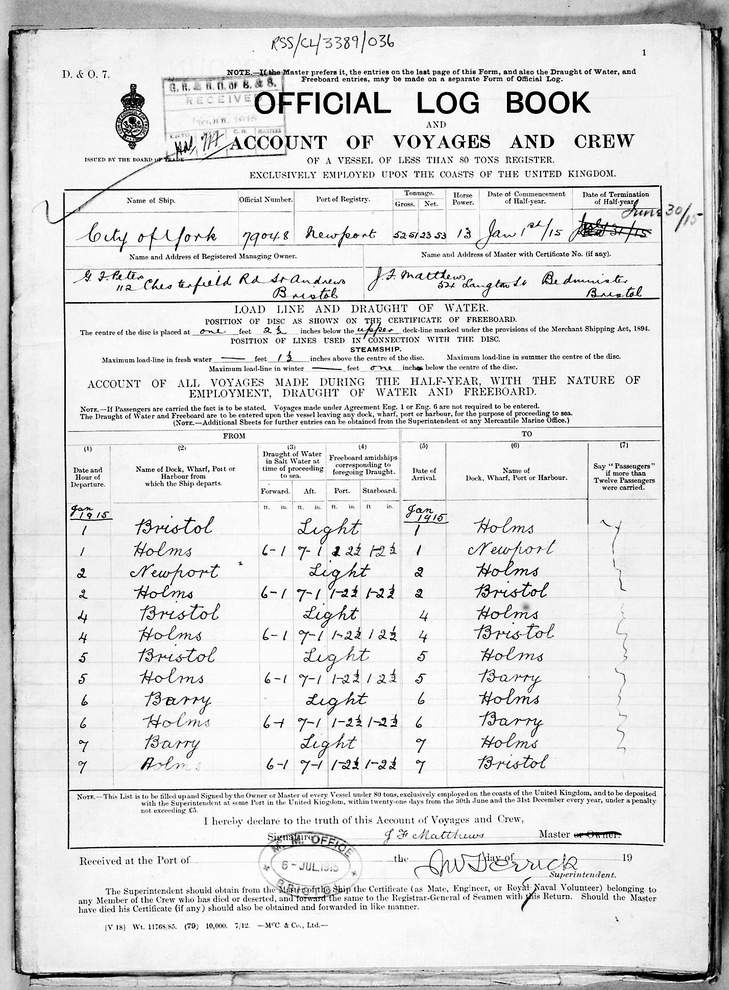 1915 crew list for the vessel 'CITY OF YORK'