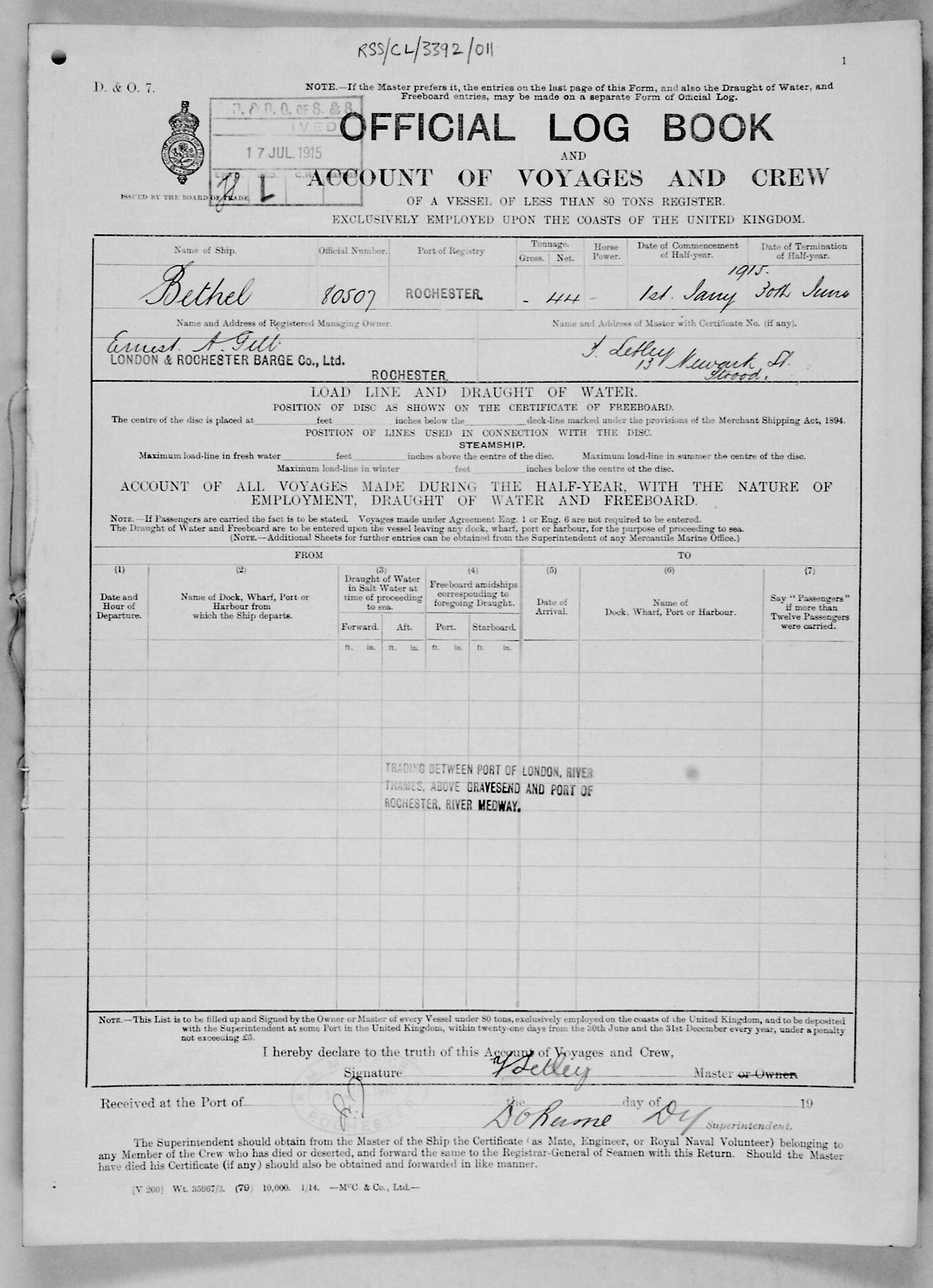 Crew list document for vessel 'BETHEL'