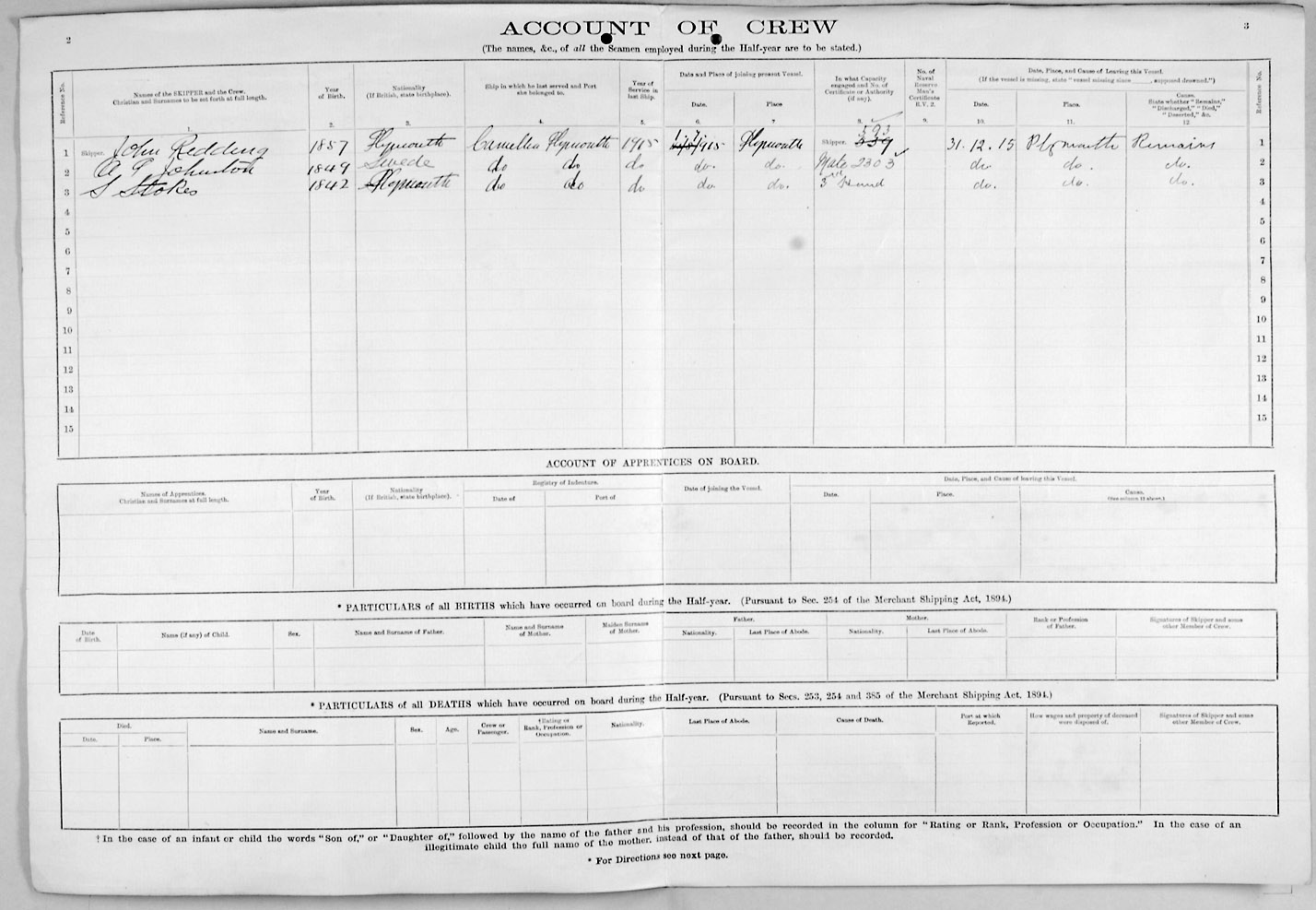 1915 crew list for the vessel 'CAMELLIA'