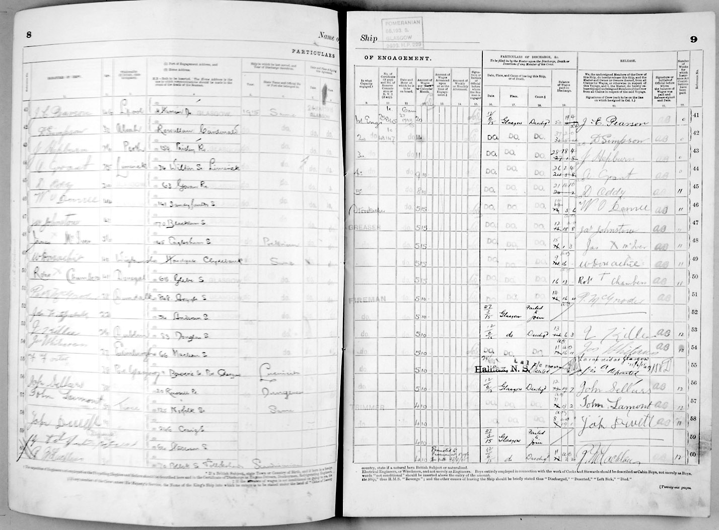 Crew list document for vessel 'POMERANIAN'
