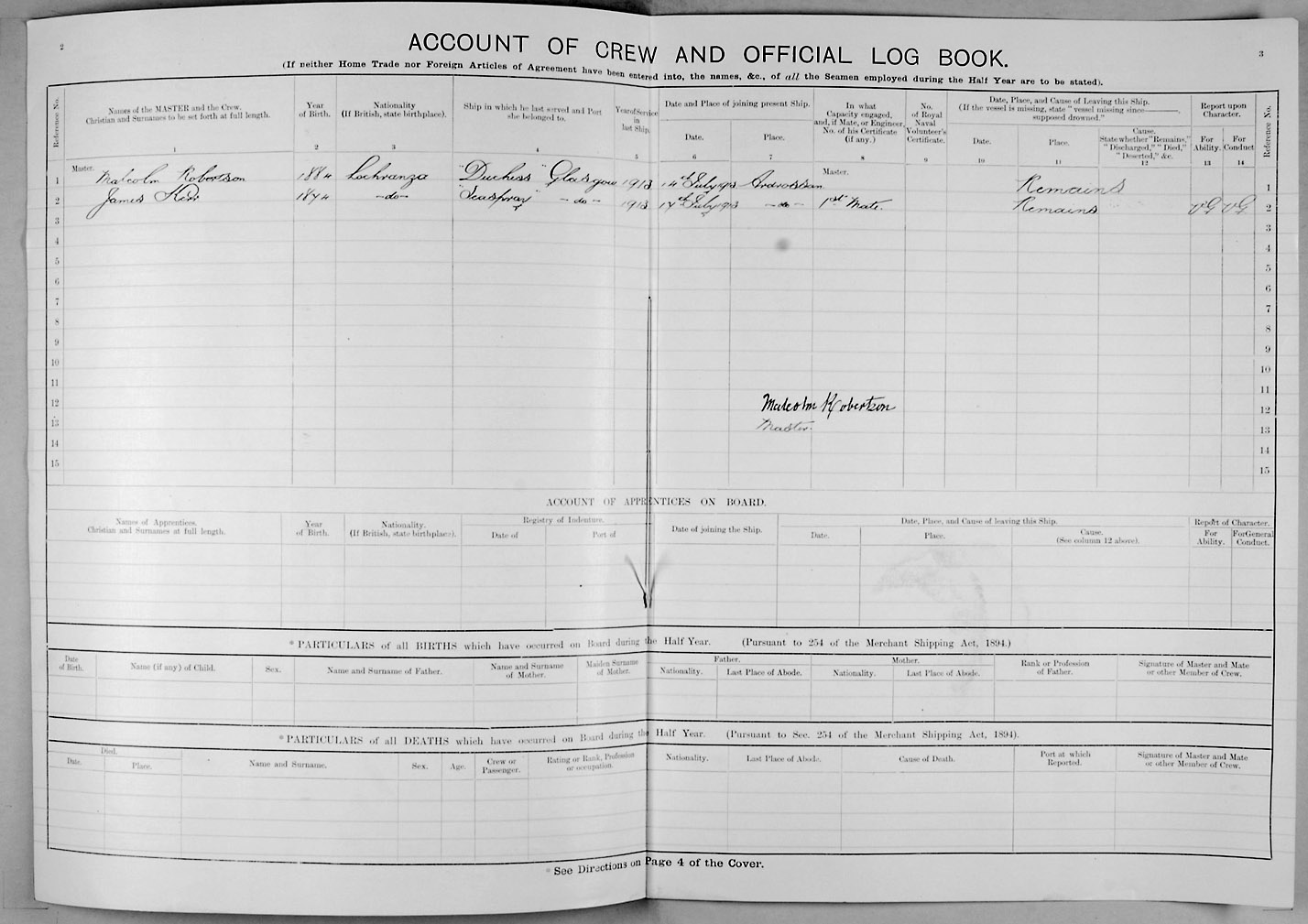 Crew list document for vessel 'MARY KERR'