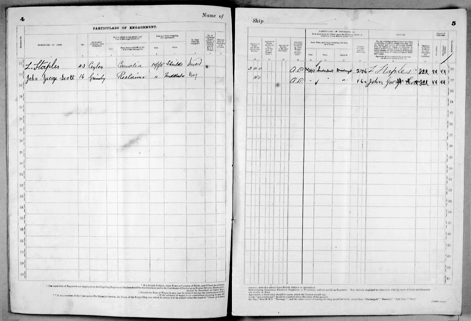 Crew list document for vessel 'RECLAIMER'