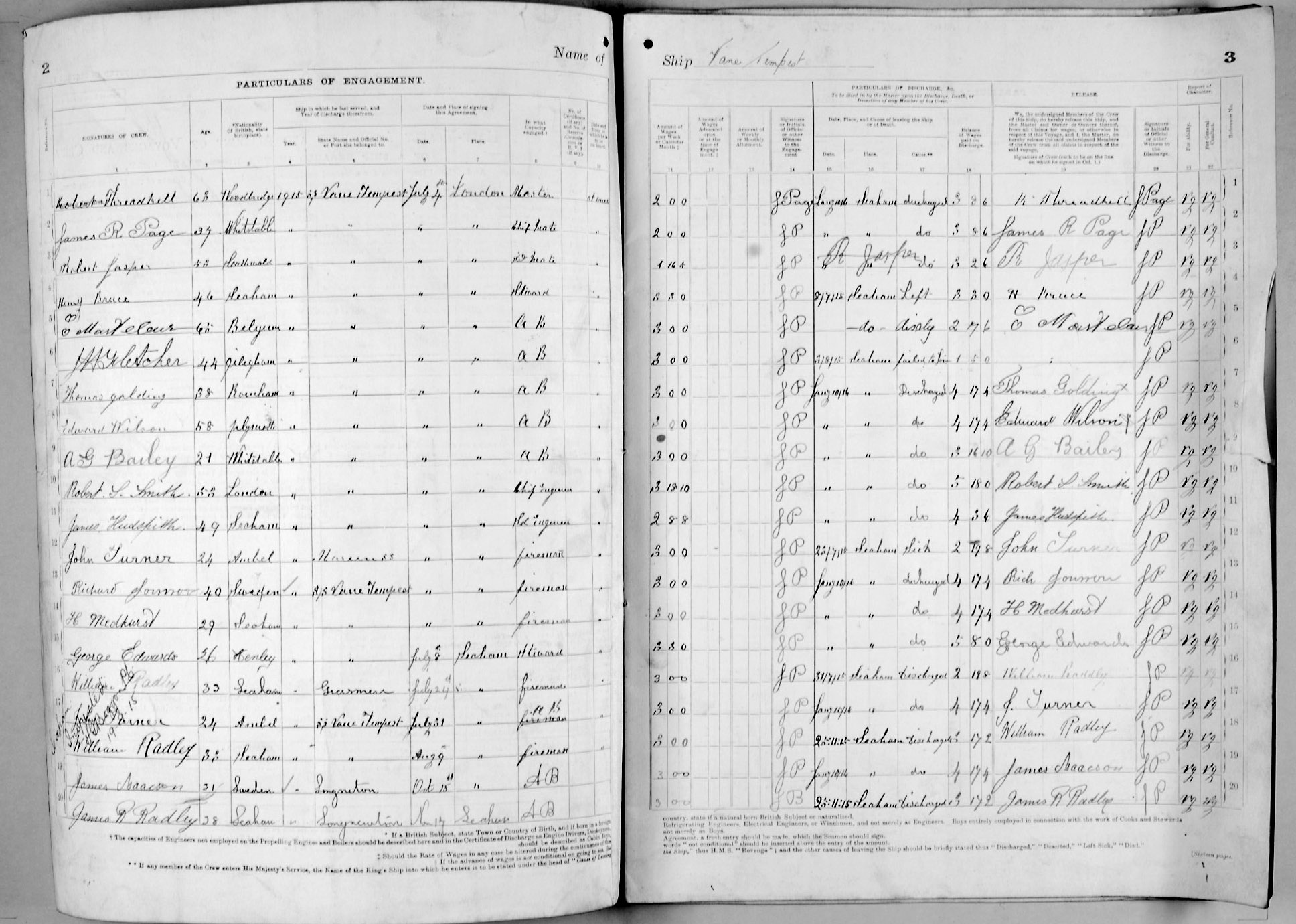 1915 crew list for the vessel 'VANE TEMPEST'
