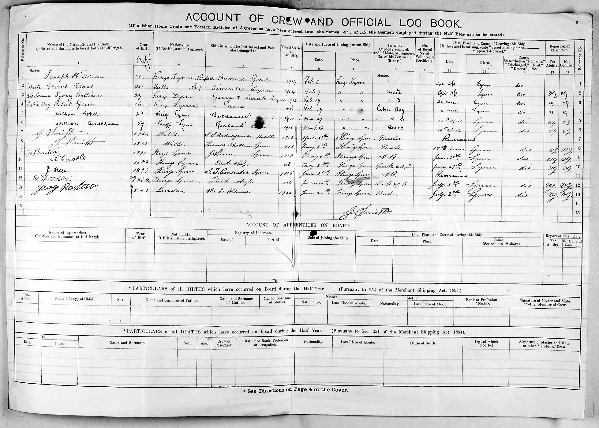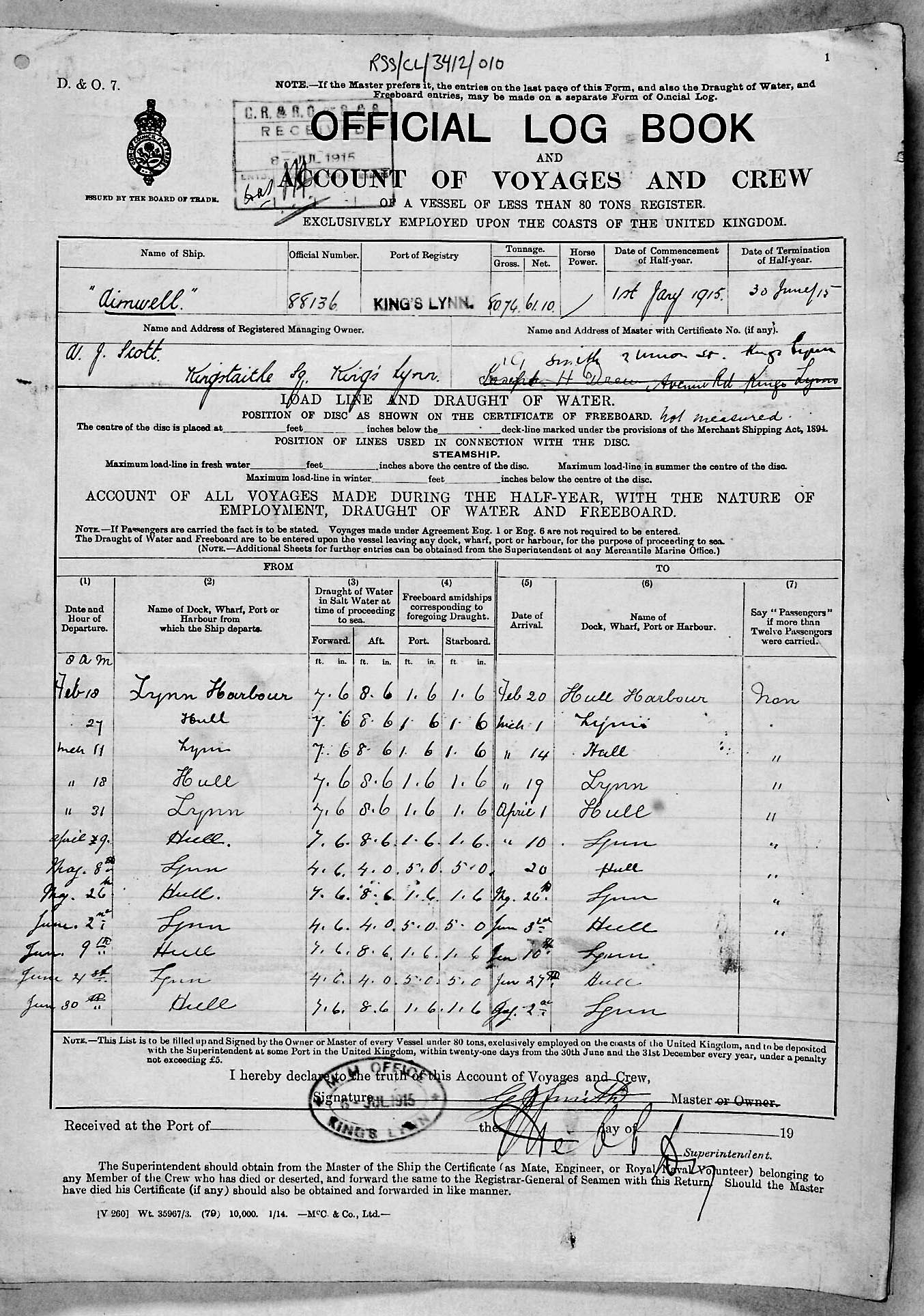 1915 crew list for the vessel 'AIMWELL'