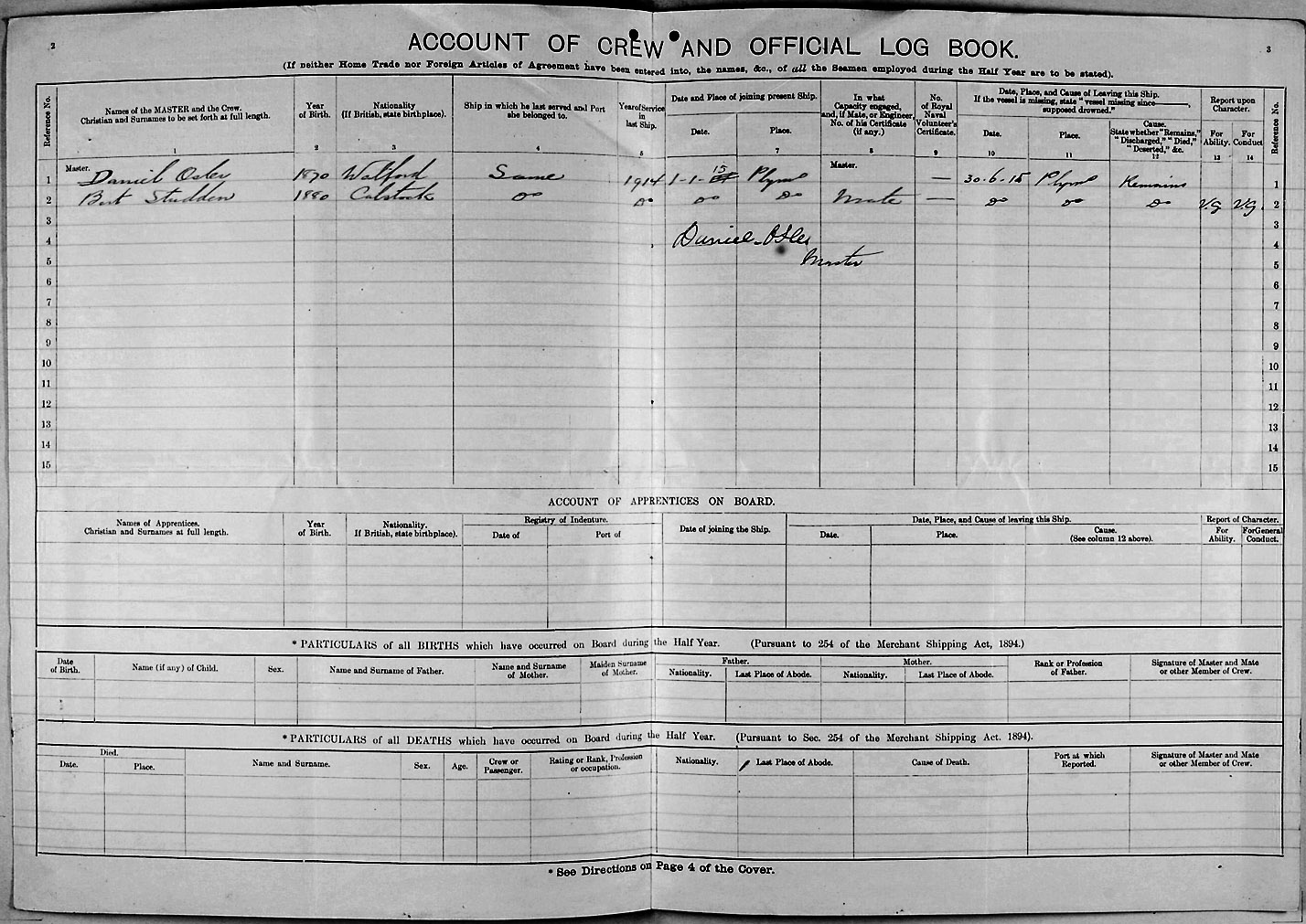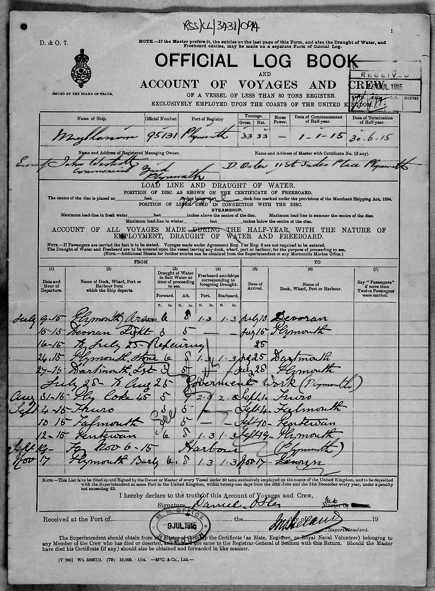 1915 crew list for the vessel 'MAYBLOSSOM'