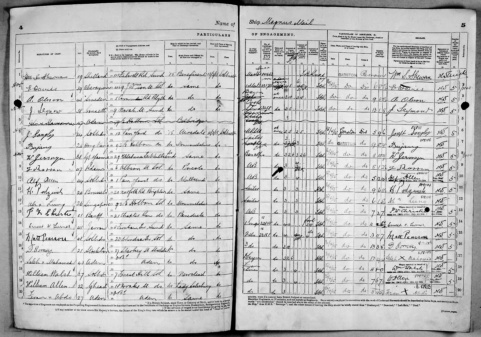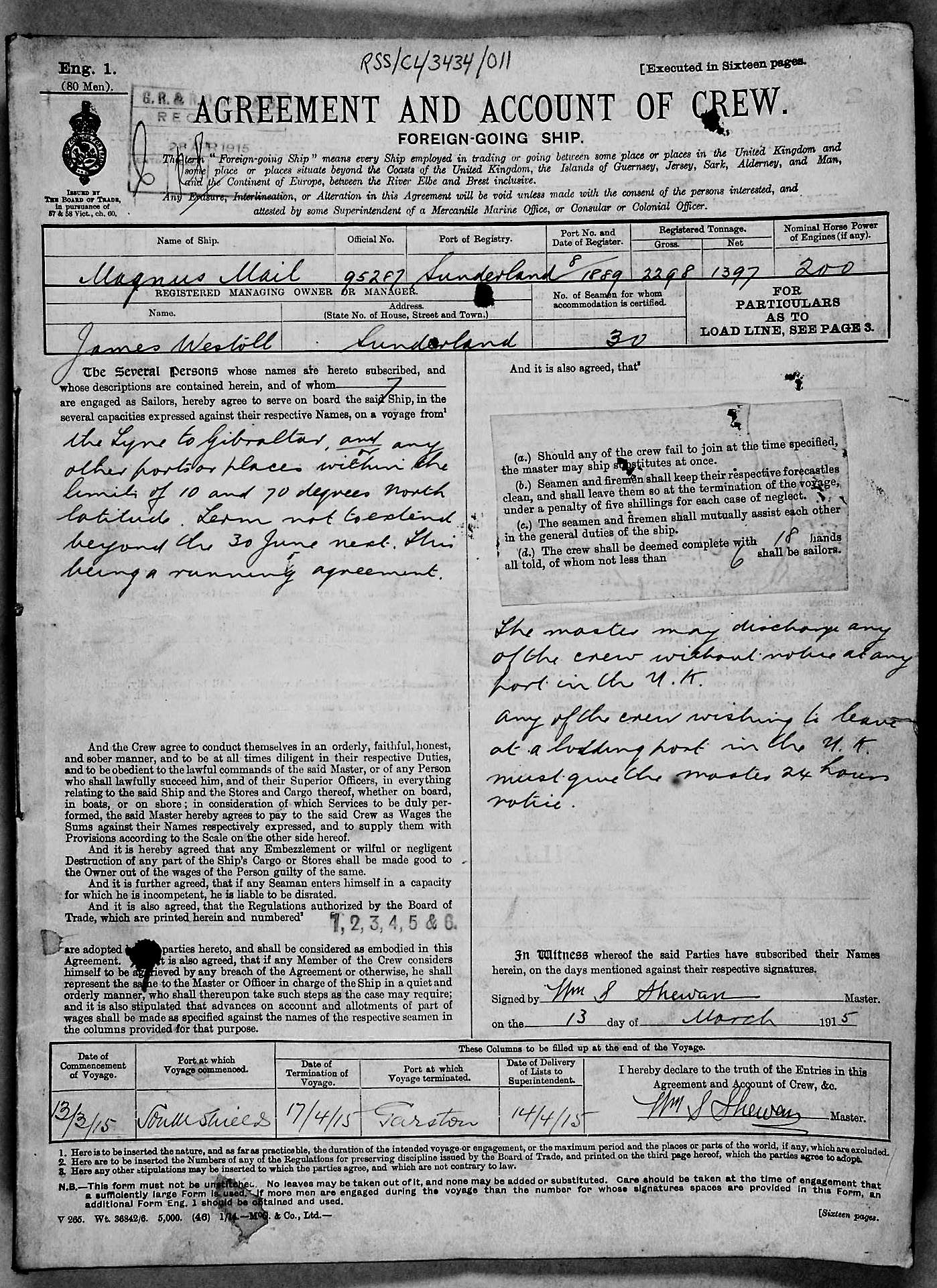 1915 crew list for the vessel 'MAGNUS MAIL'