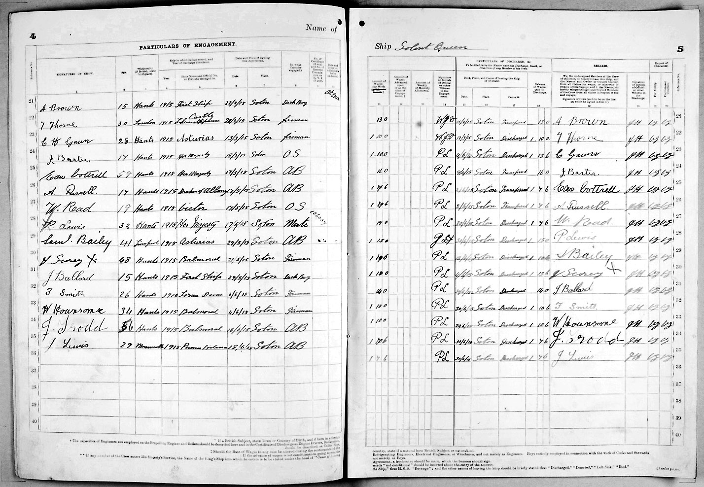 1915 crew list for the vessel 'SOLENT QUEEN'