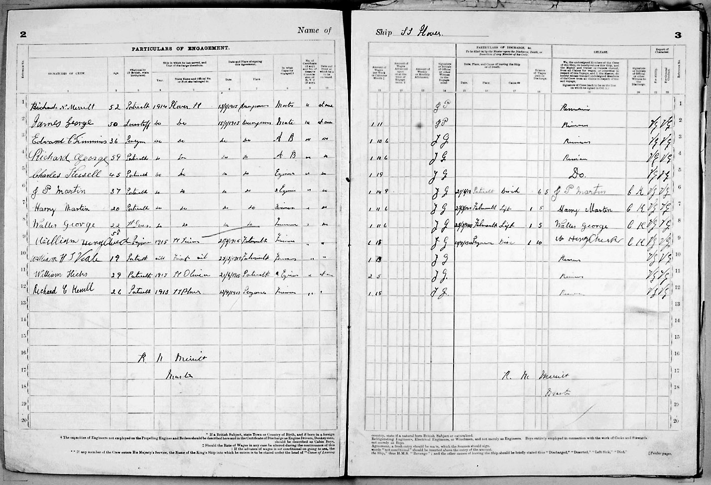 1915 crew list for the vessel 'PLOVER'