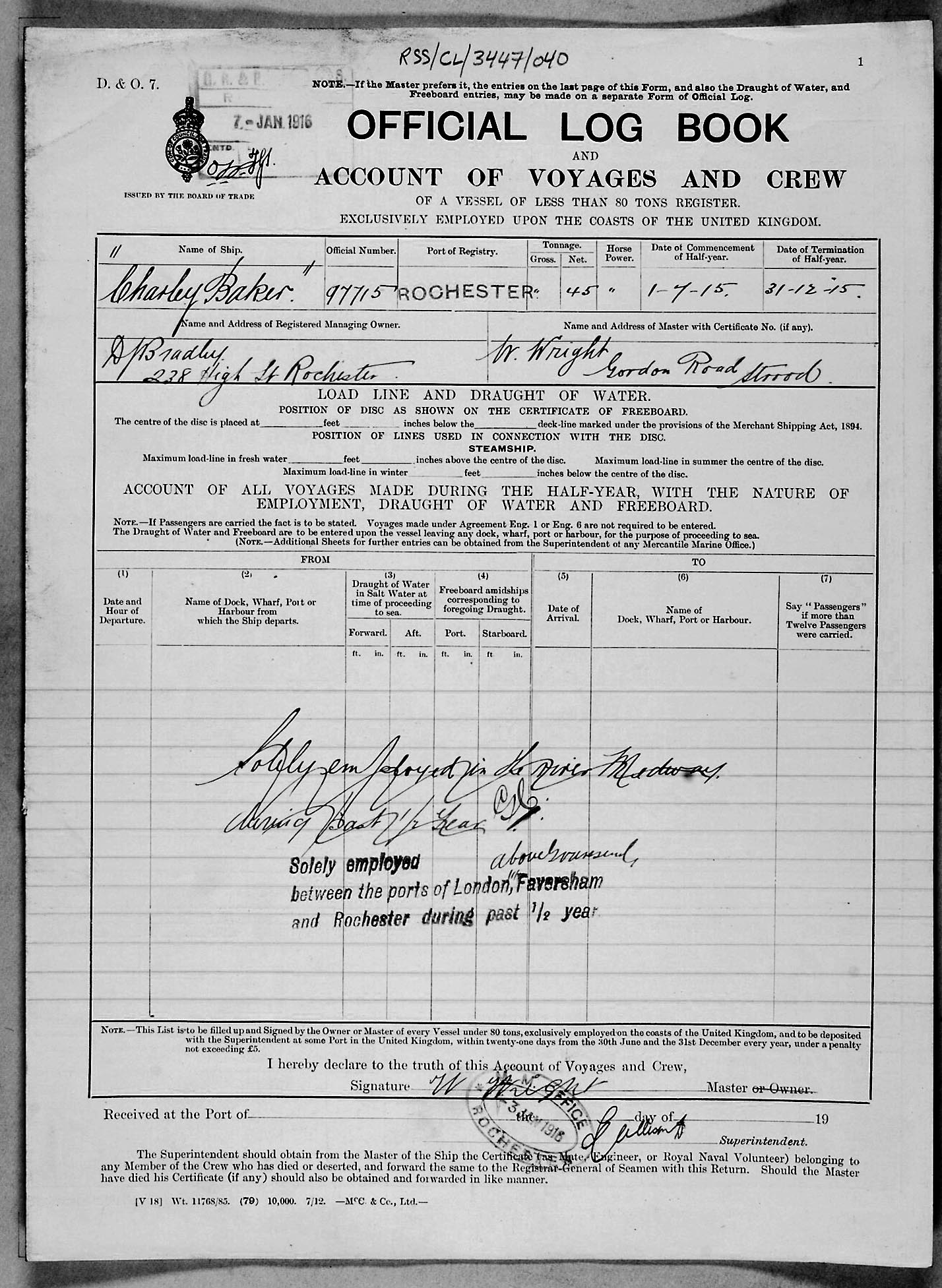 1915 crew list for the vessel 'CHARLEY BAKER'