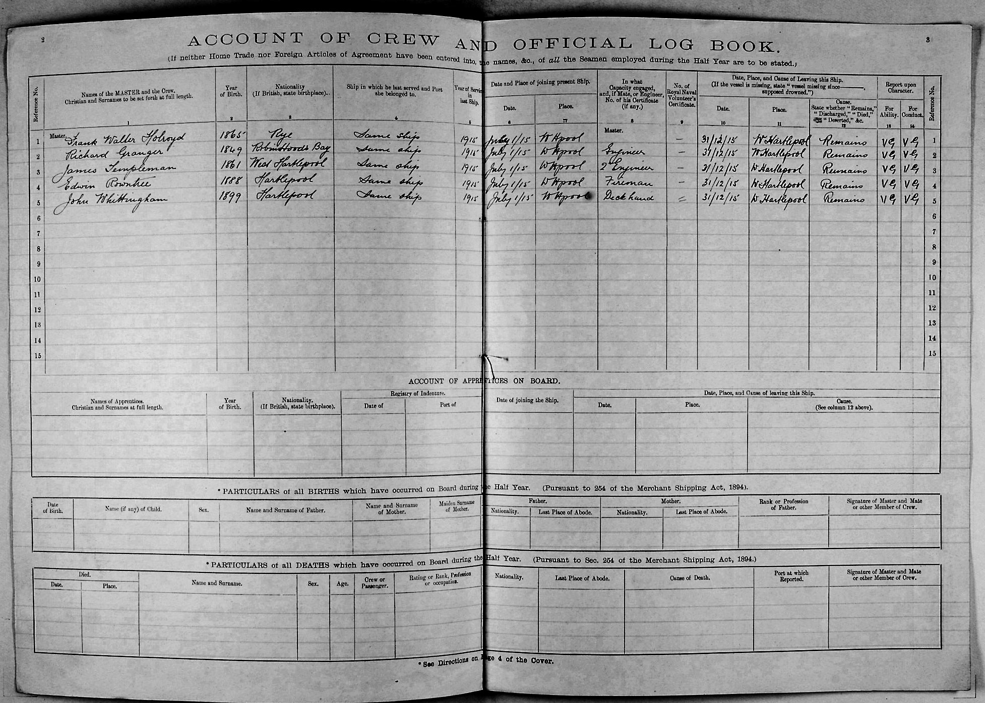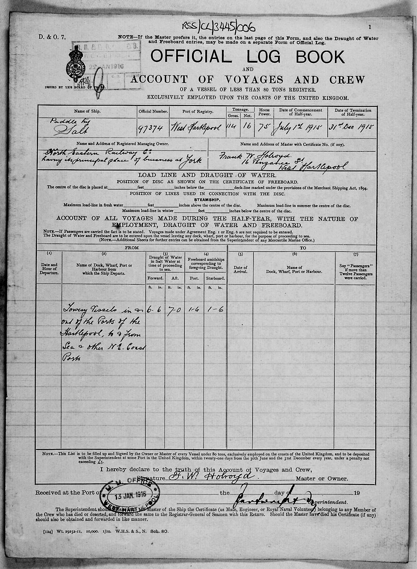 1915 crew list for the vessel 'SALT'
