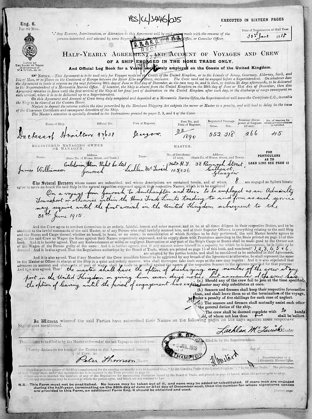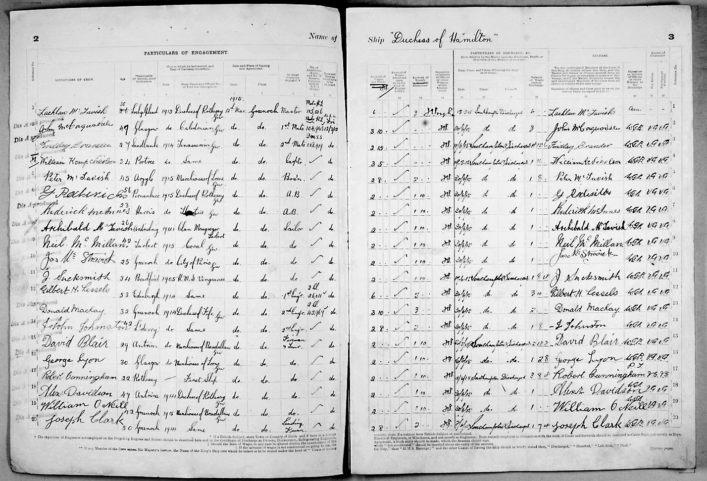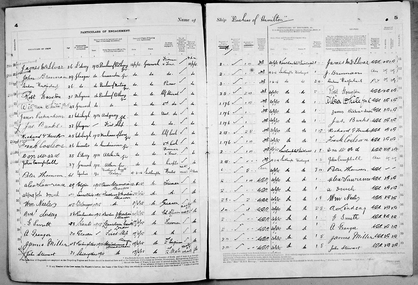 1915 crew list for the vessel 'DUCHESS OF HAMILTON'