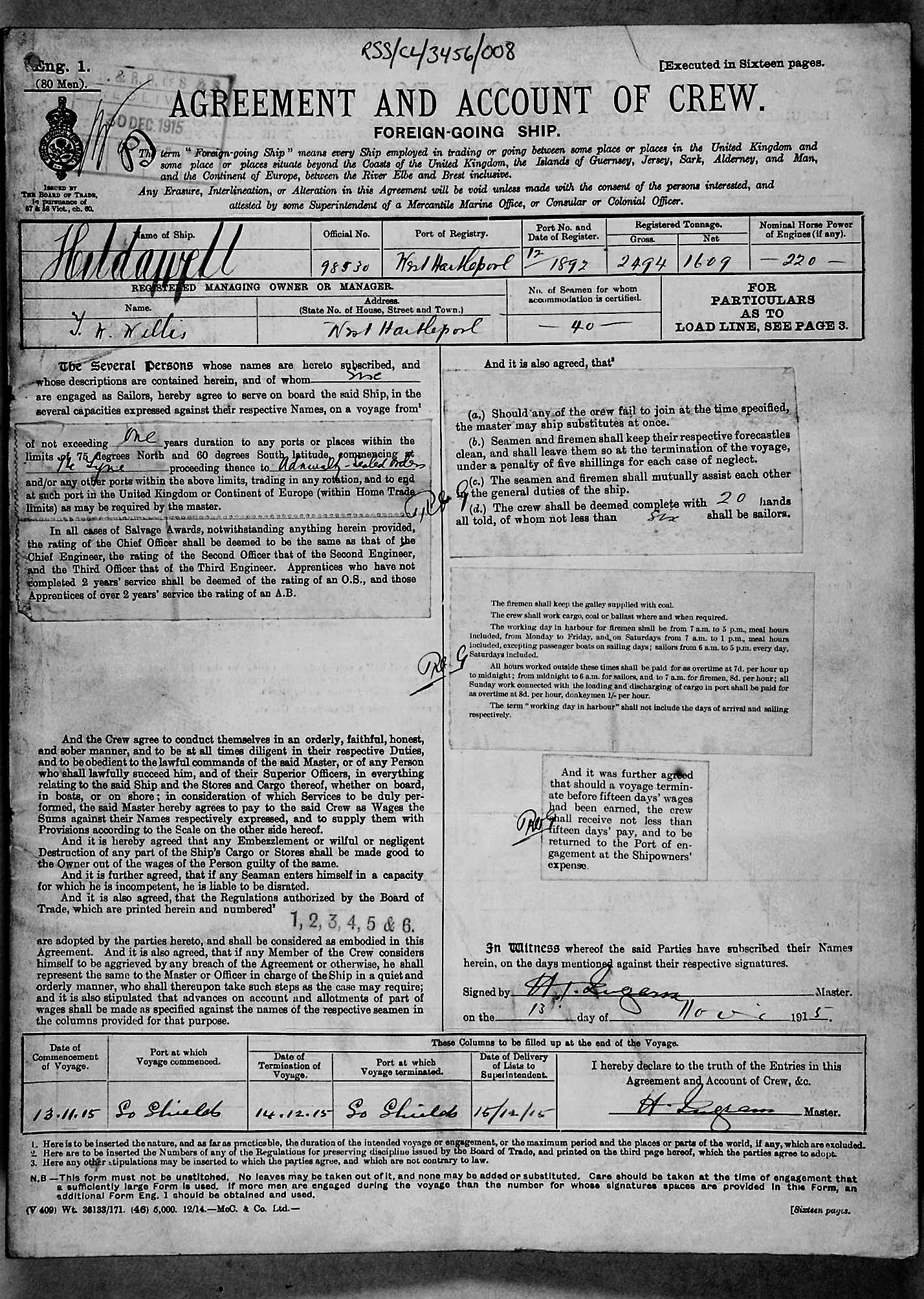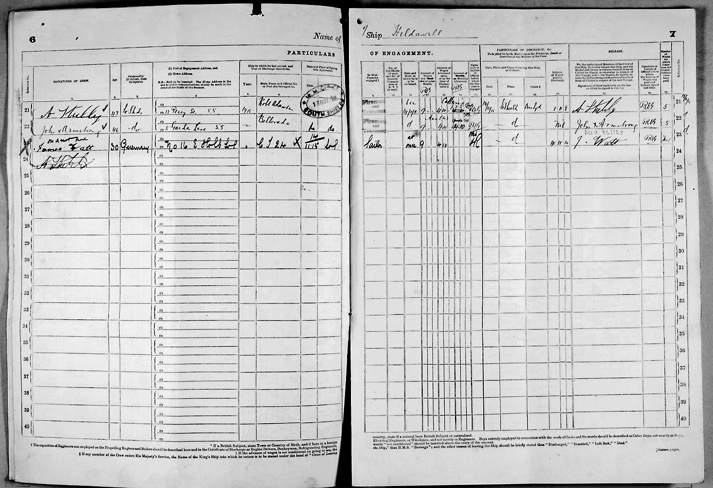 Crew list document for vessel 'HILDAWELL'