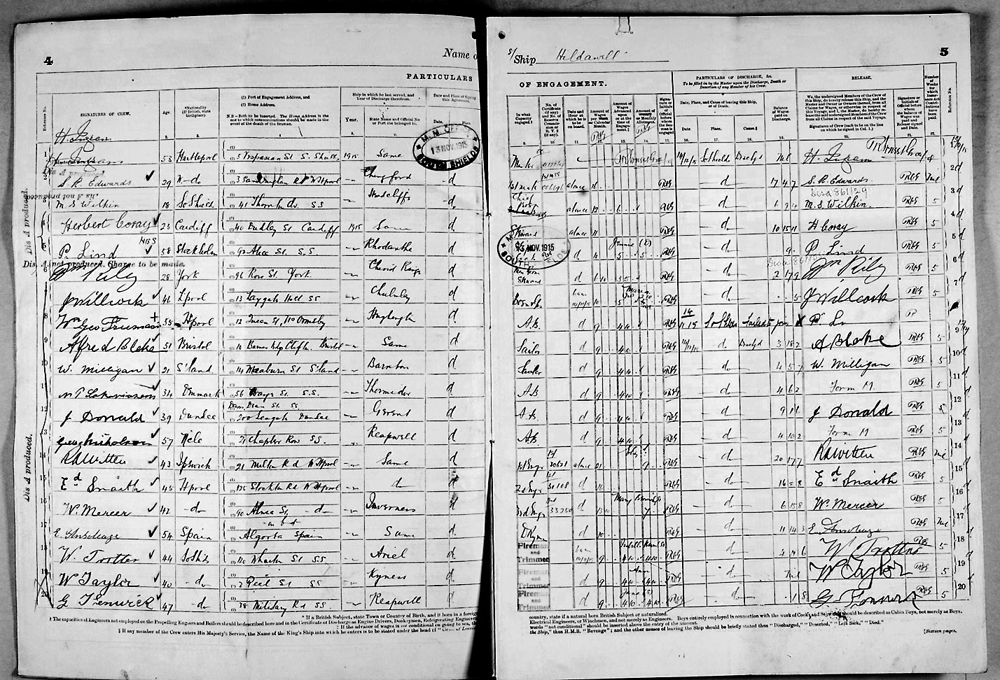 1915 crew list for the vessel 'HILDAWELL'