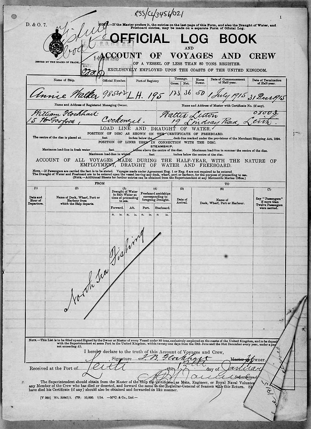 1915 crew list for the vessel 'ANNIE WALKER'