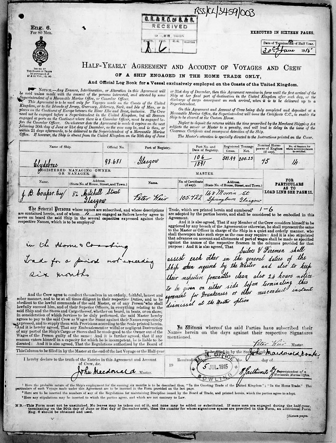 Crew list document for vessel 'CLYDEBRAE'