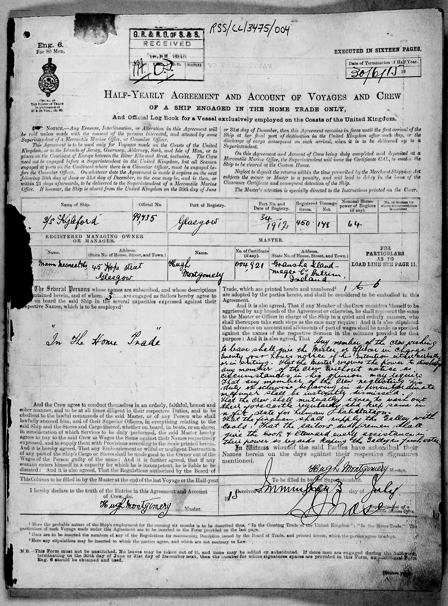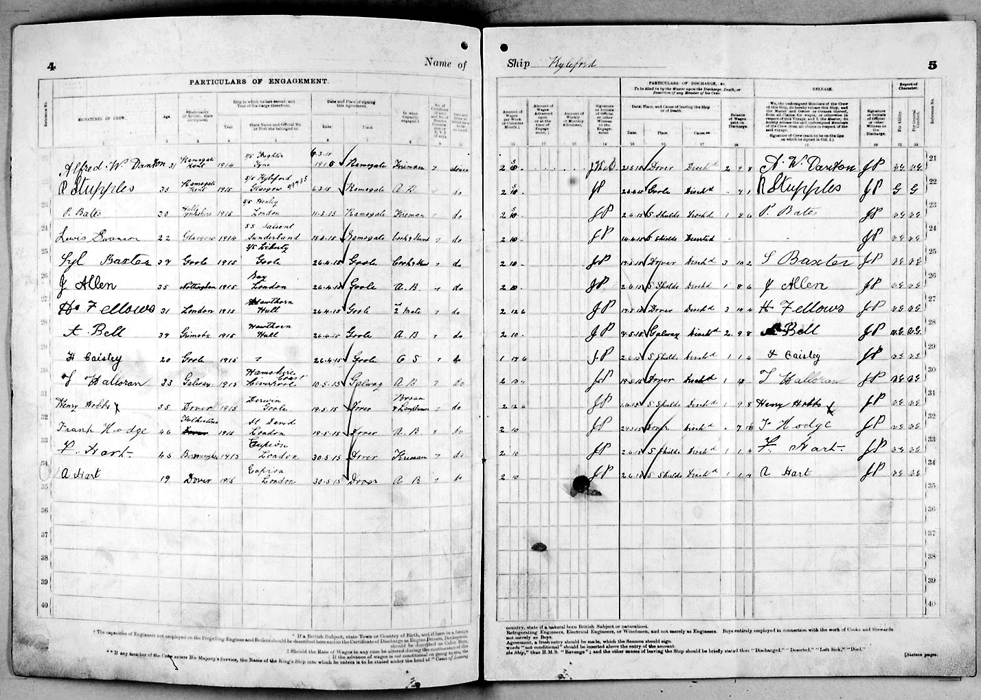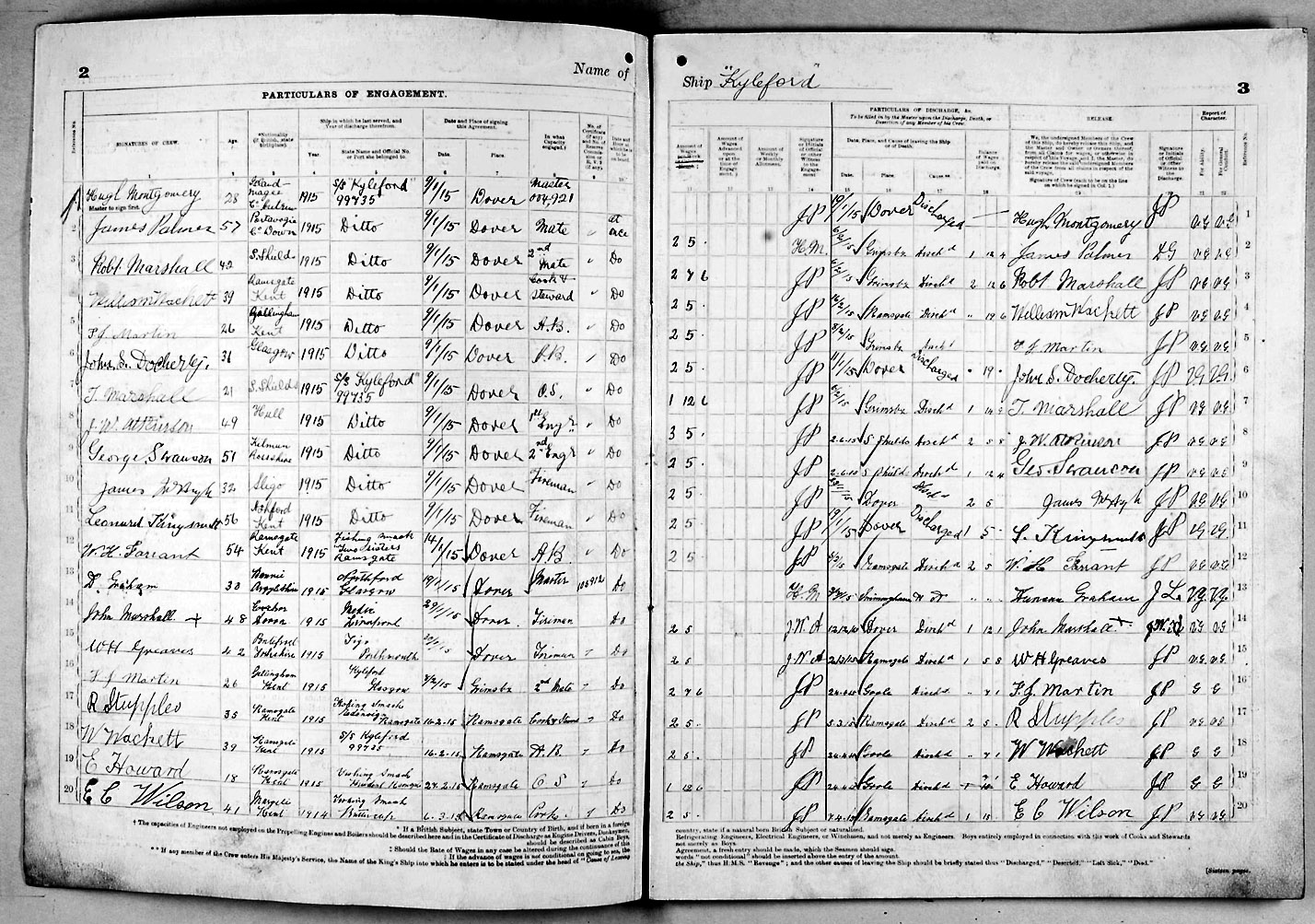 1915 crew list for the vessel 'KYLEFORD'