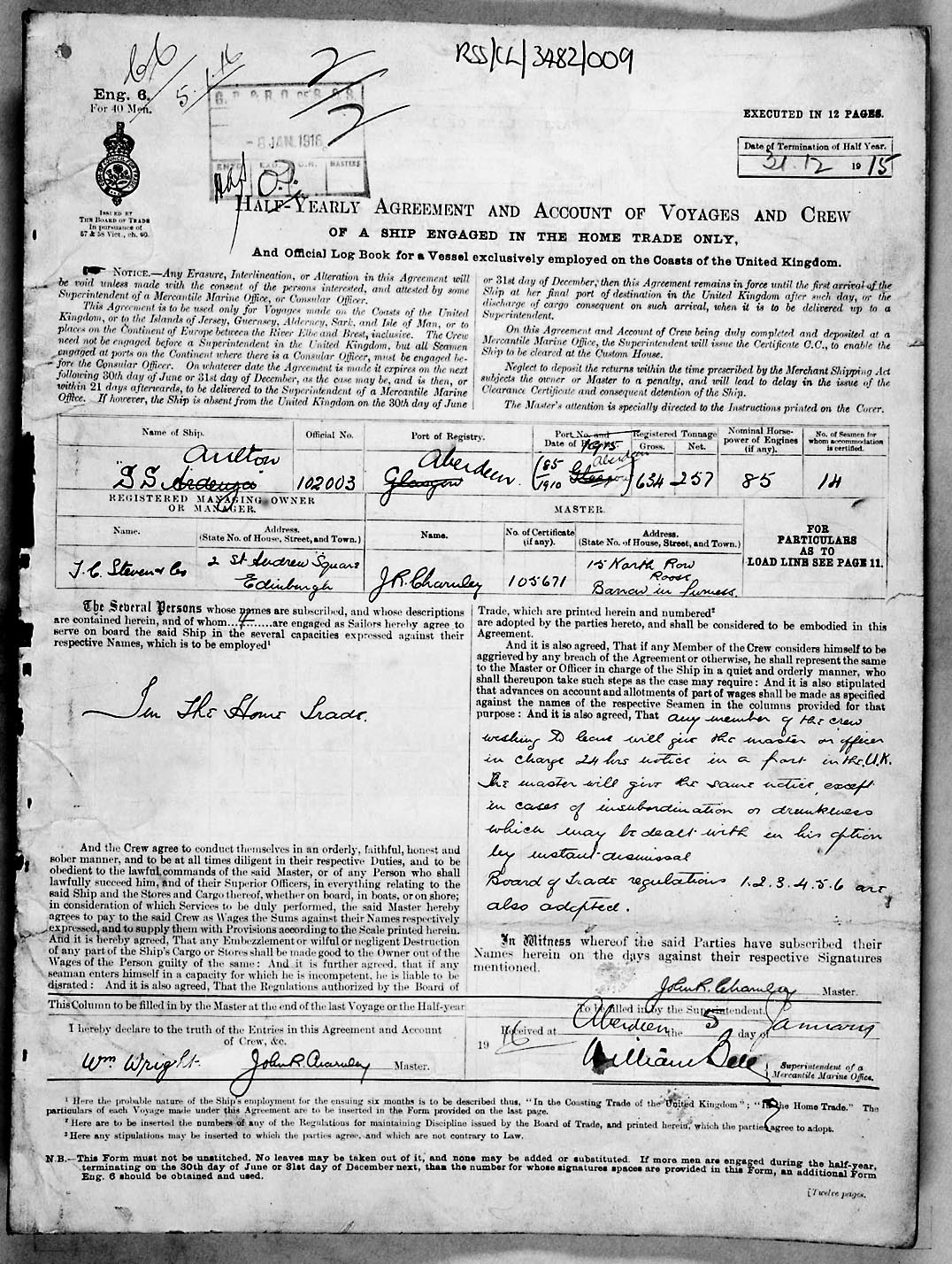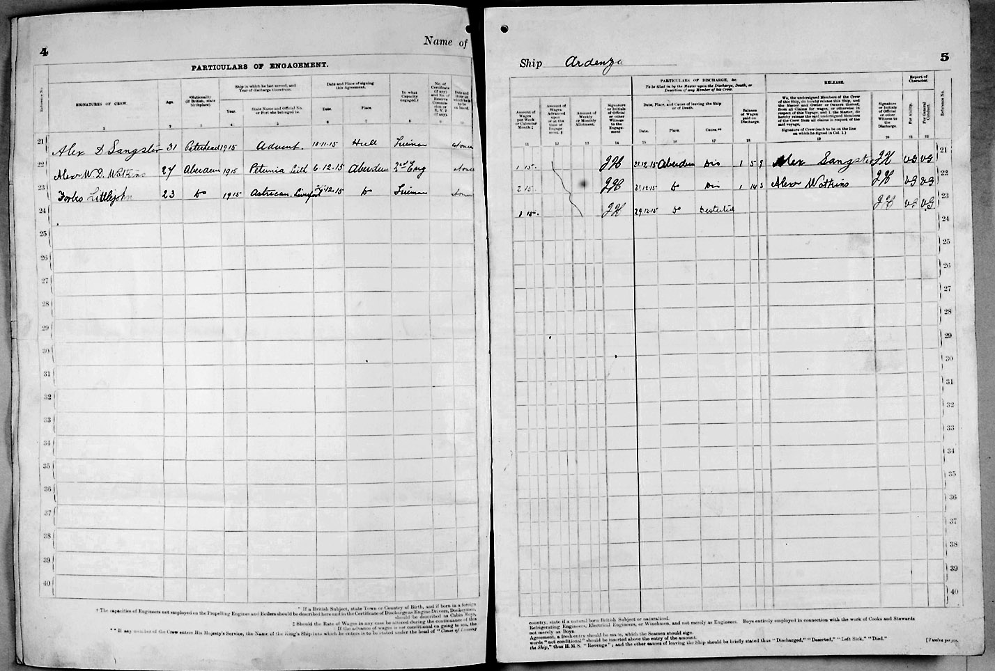 1915 crew list for the vessel 'ARDENZA'