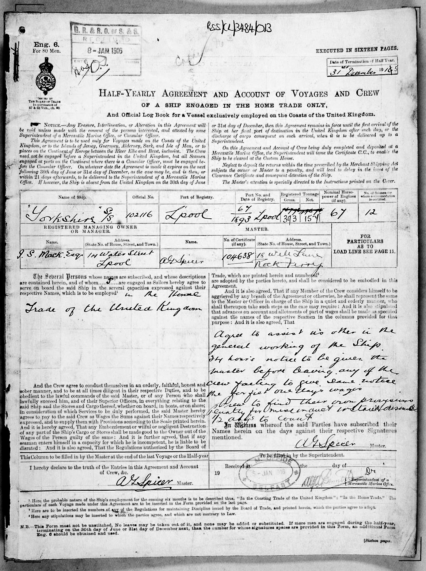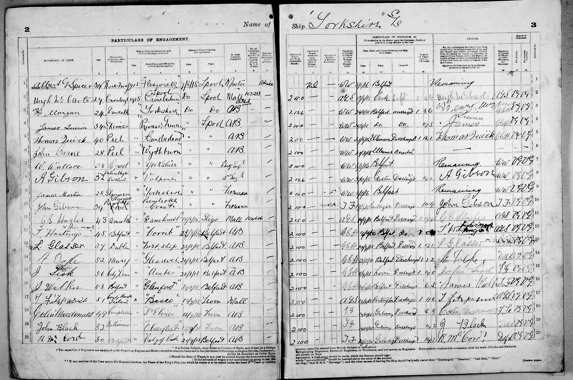 Crew list document for vessel 'YORKSHIRE'