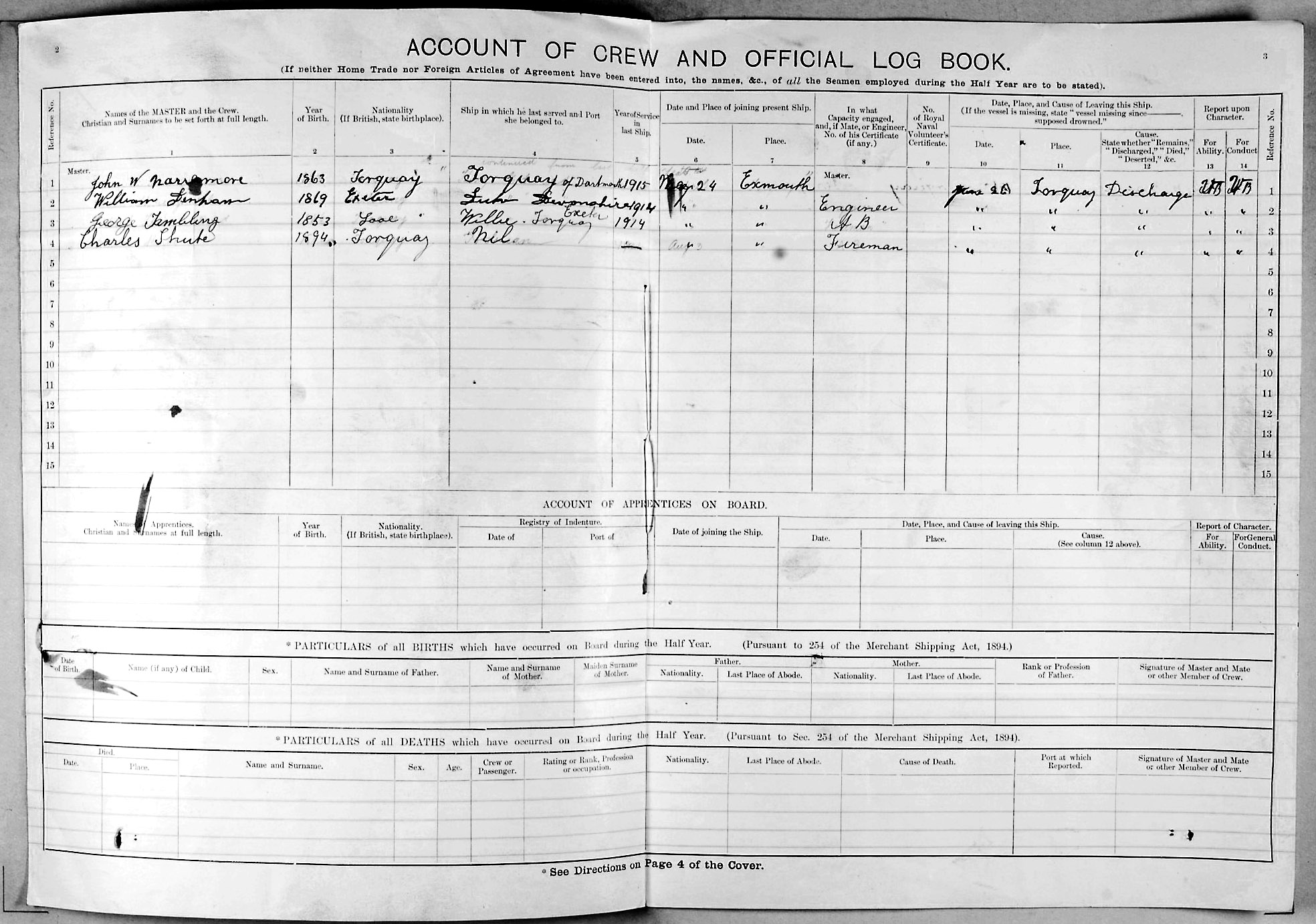 1915 crew list for the vessel 'KING EDWARD'