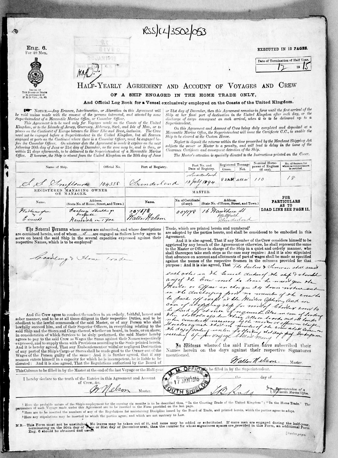 Crew list document for vessel 'SWIFTSURE'