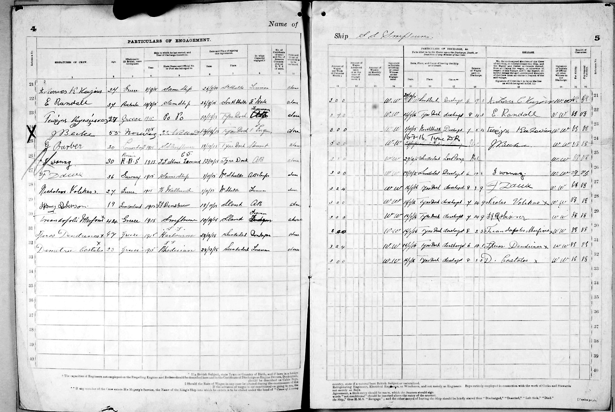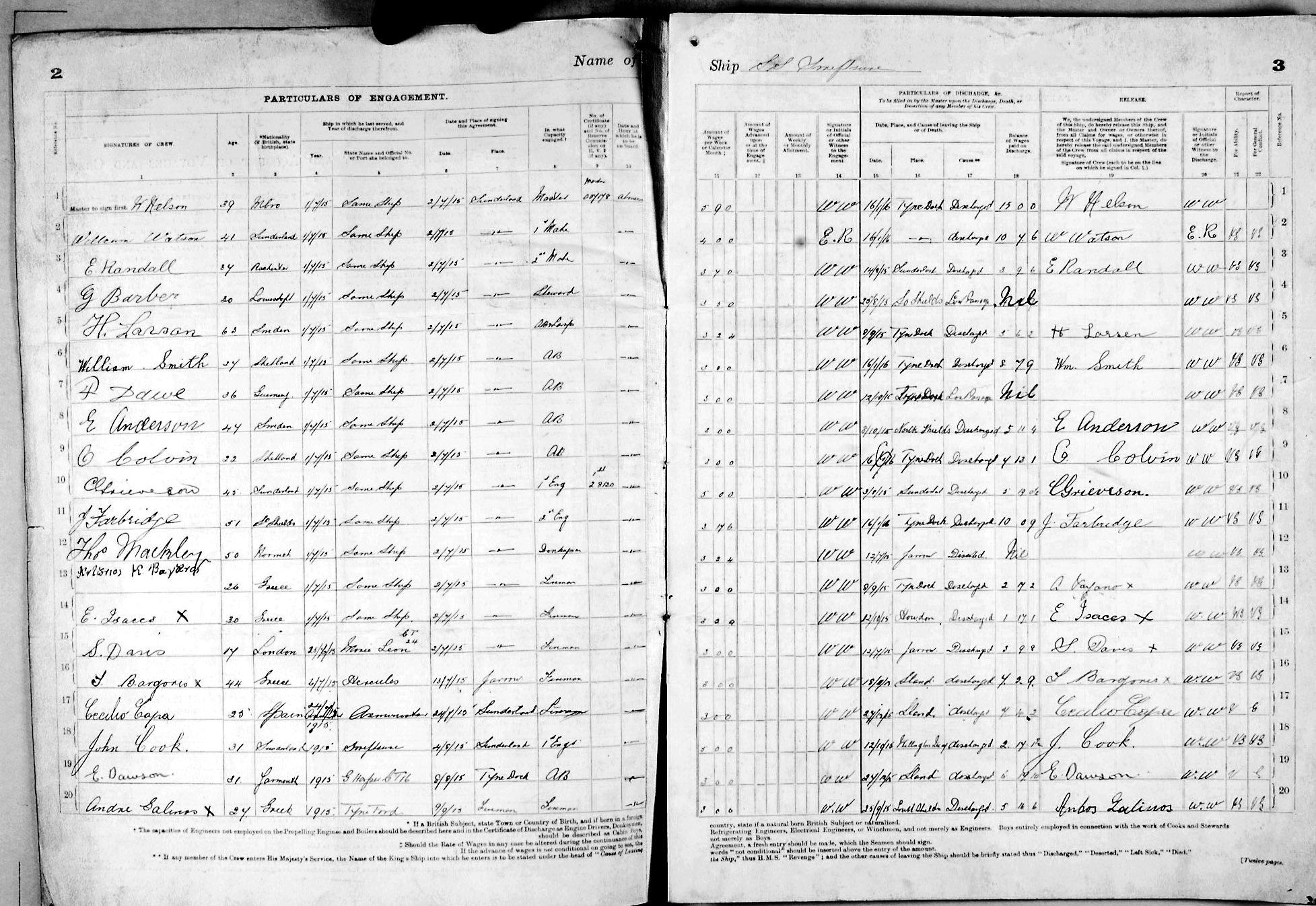 1915 crew list for the vessel 'SWIFTSURE'