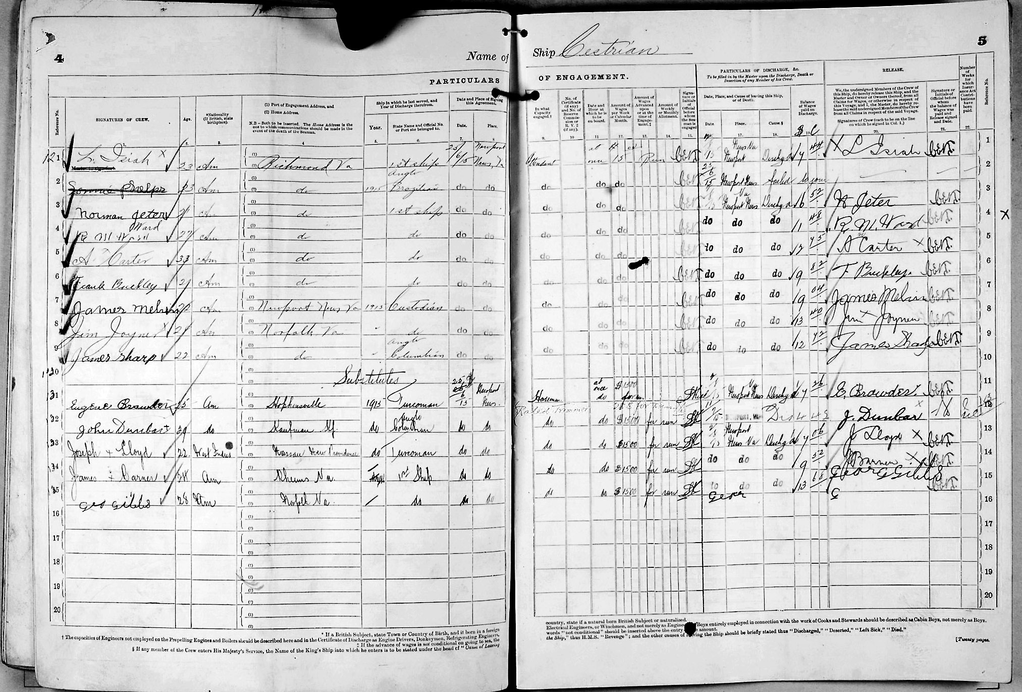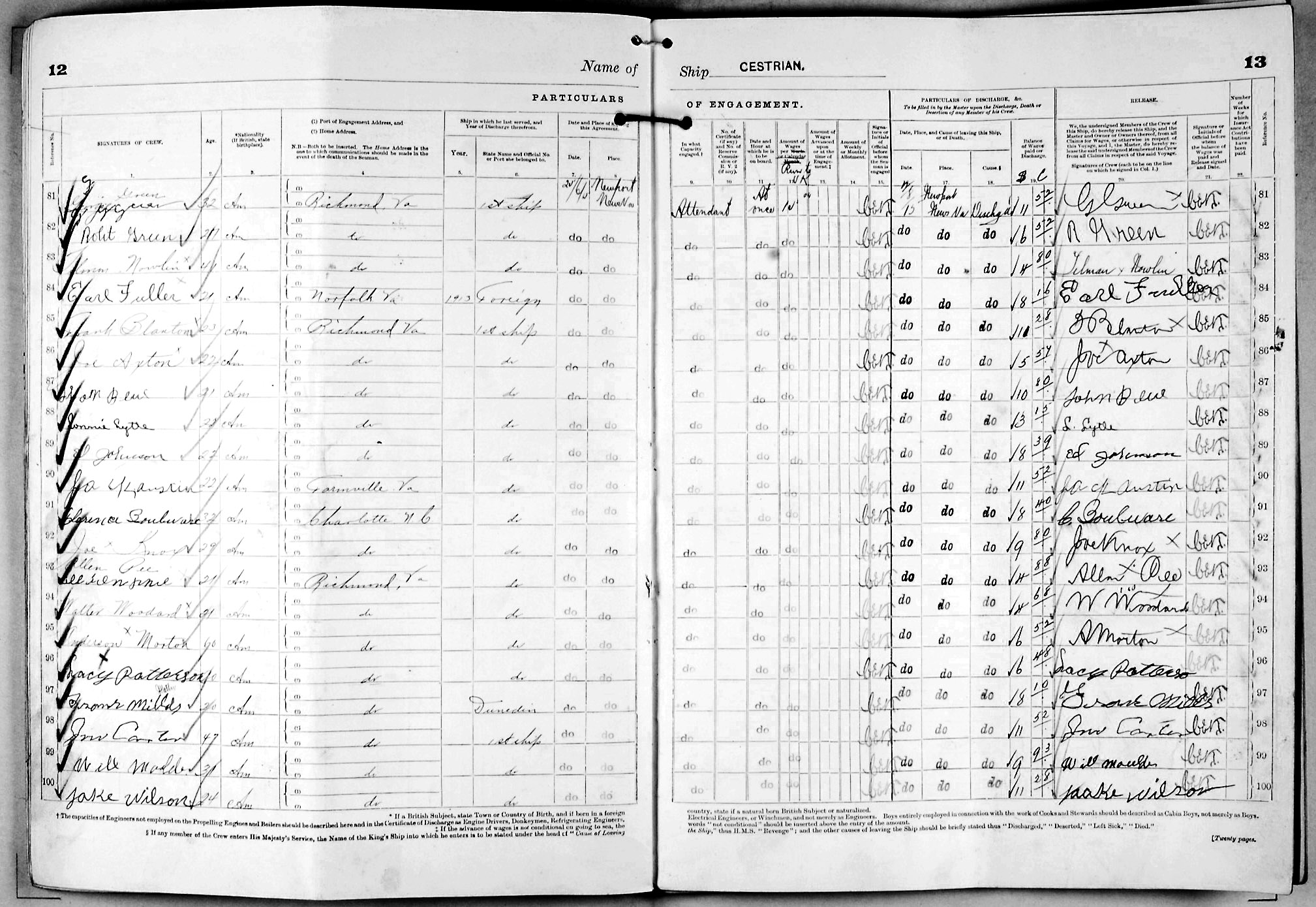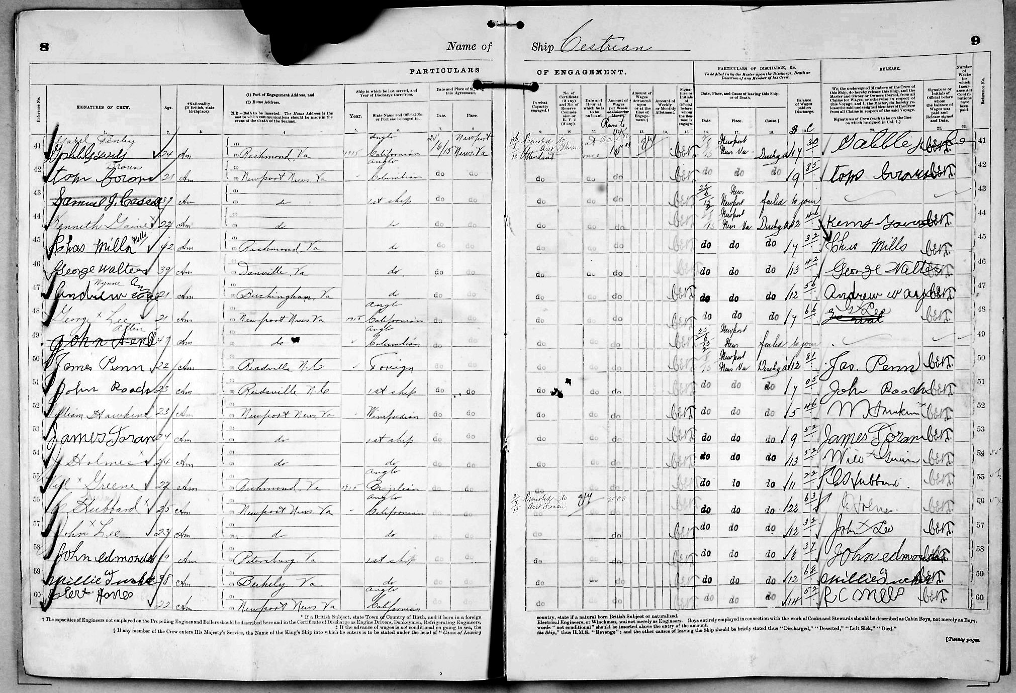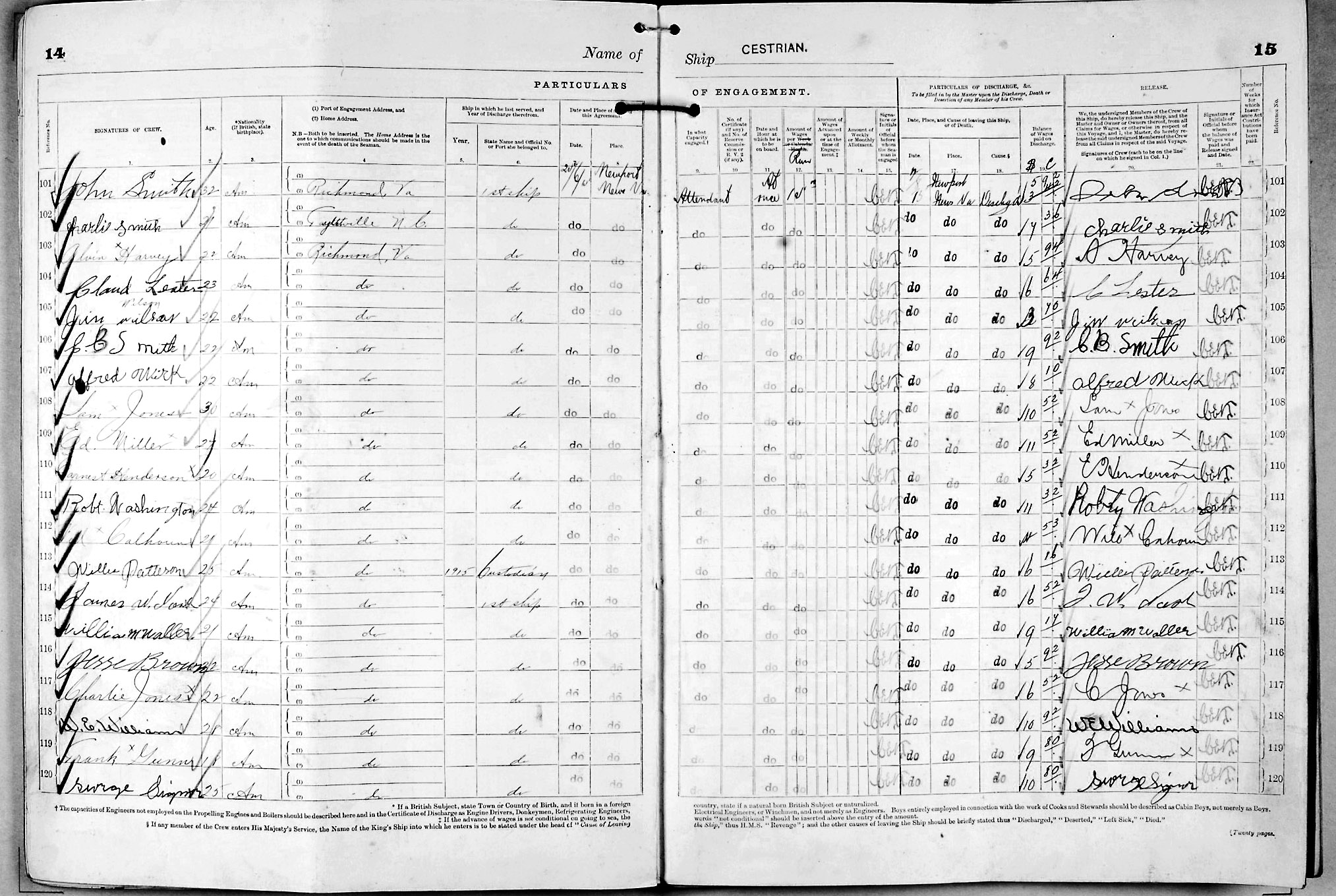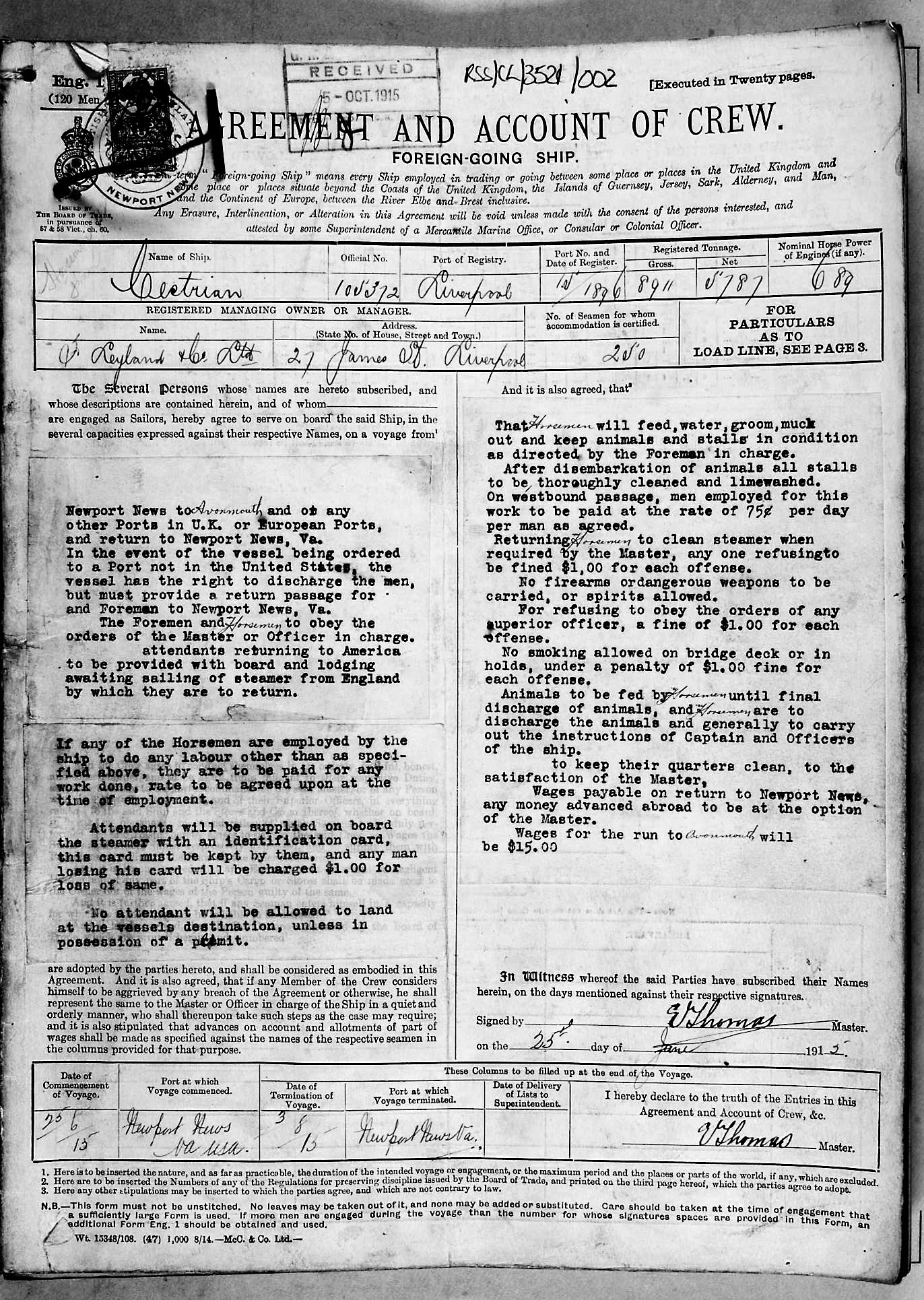 1915 crew list for the vessel 'CESTRIAN'