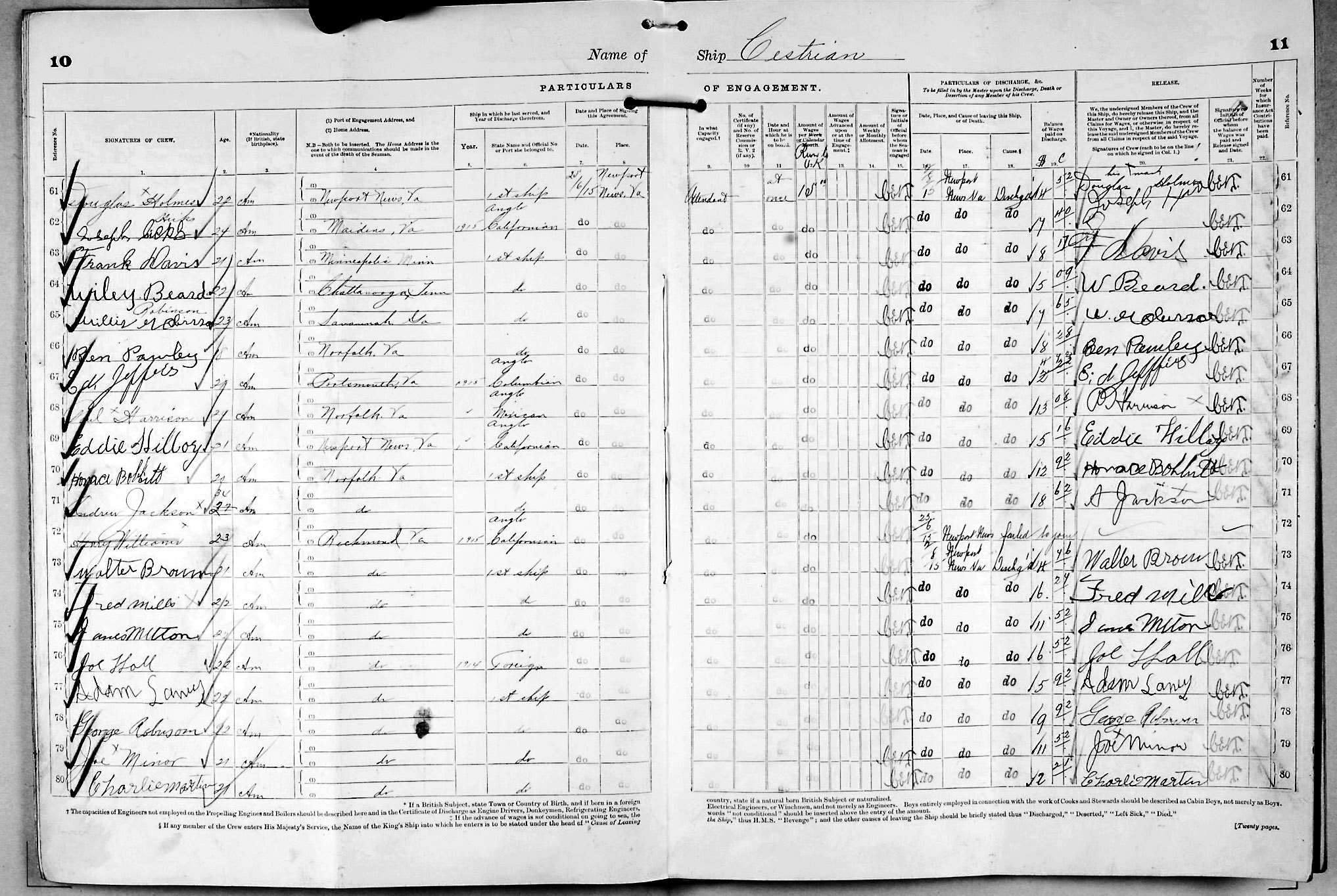 Crew list document for vessel 'CESTRIAN'