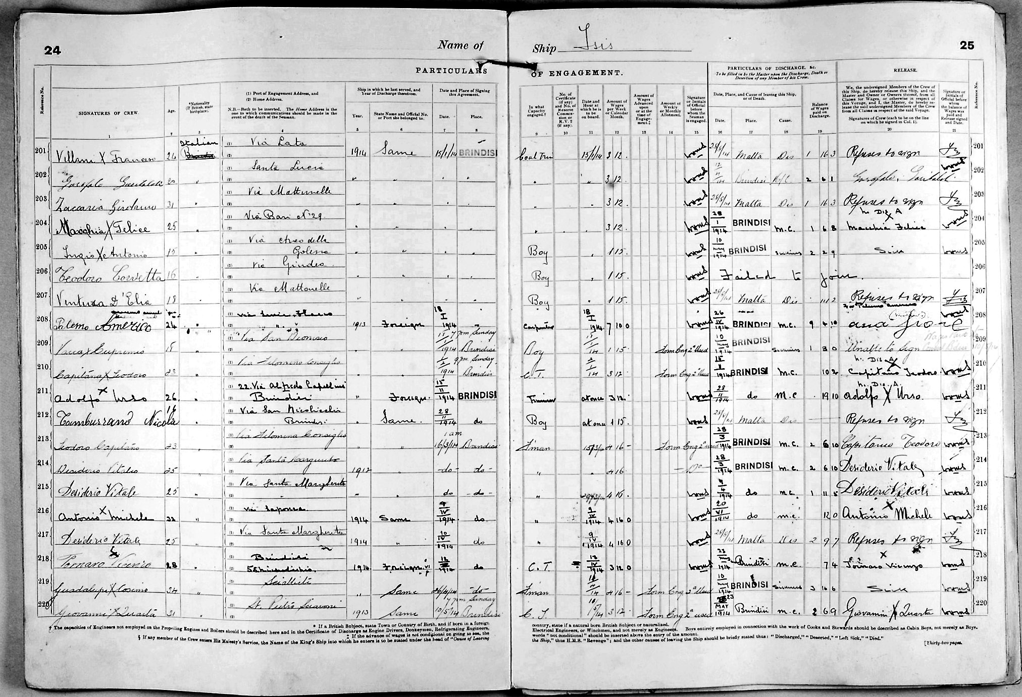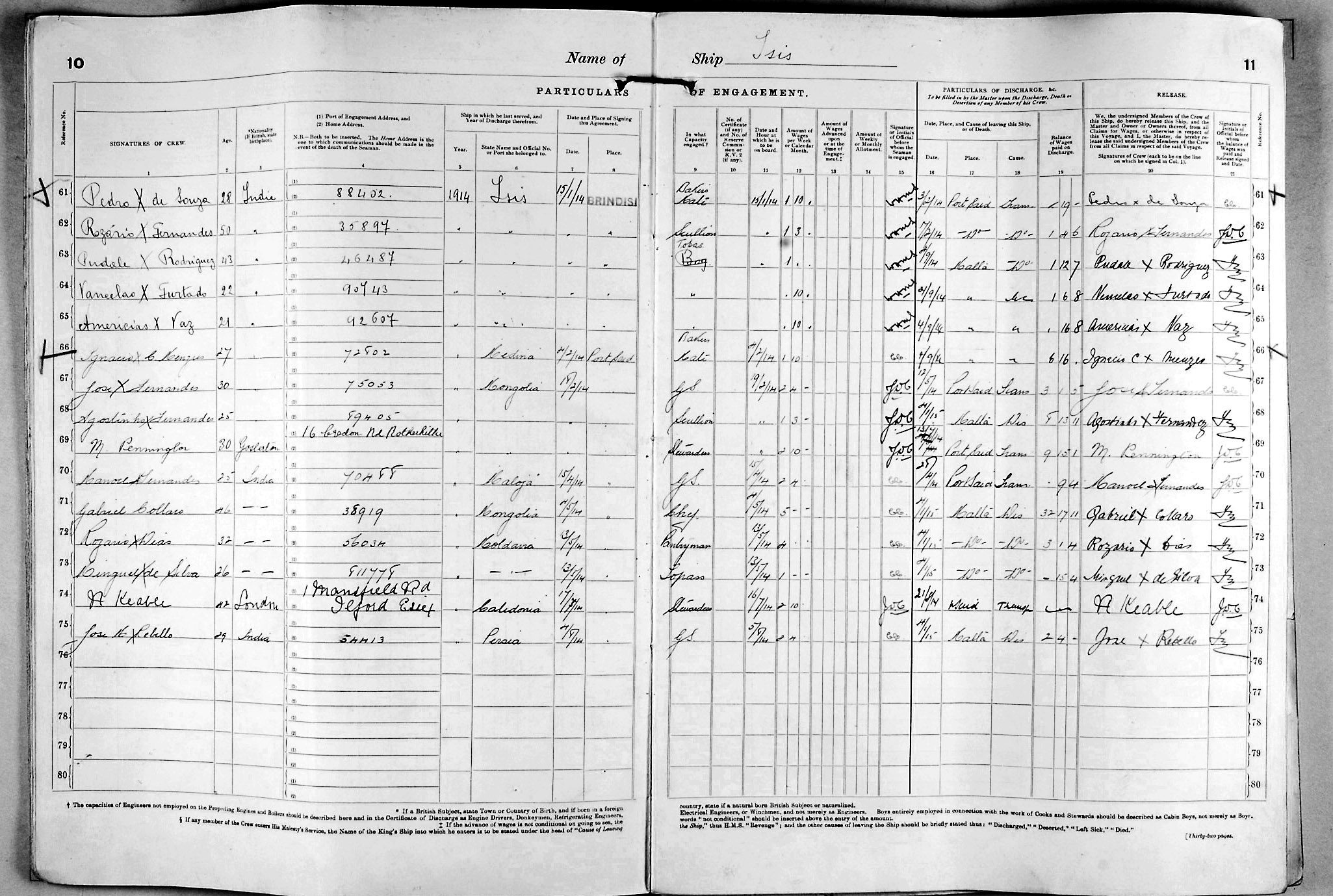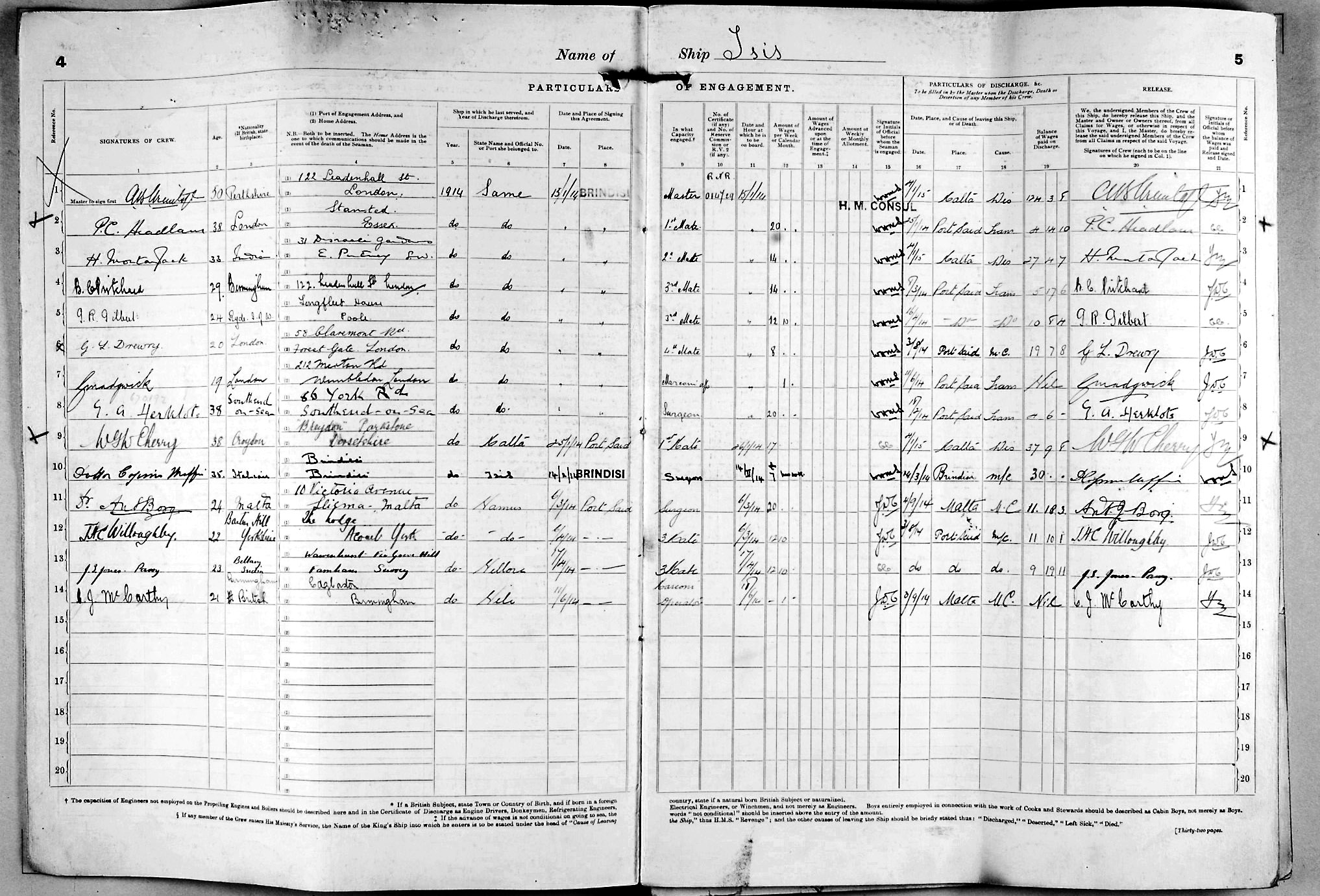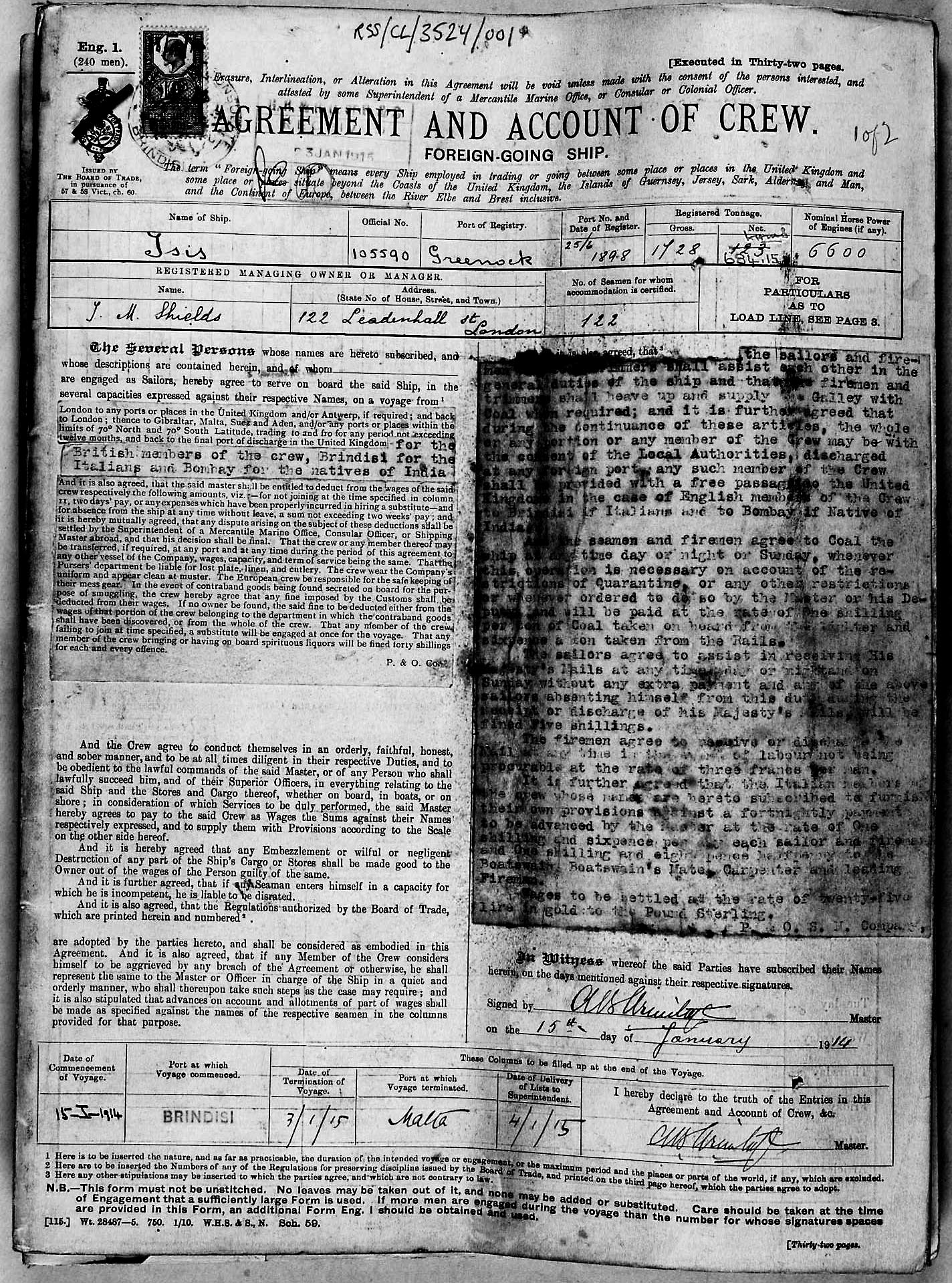 1915 crew list for the vessel 'ISIS'